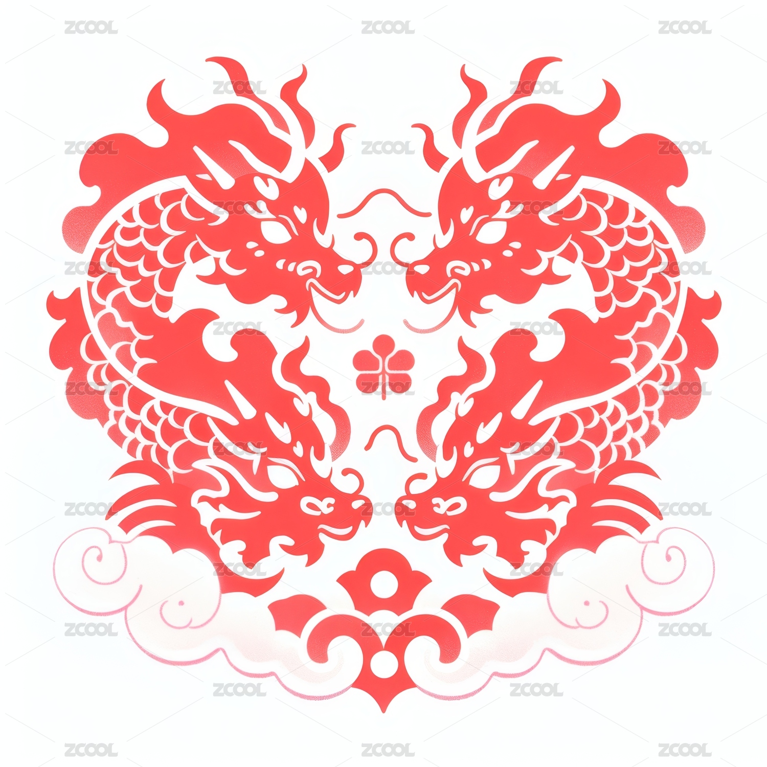 新春龙年窗花剪纸传统喜庆矢量插画素材背景