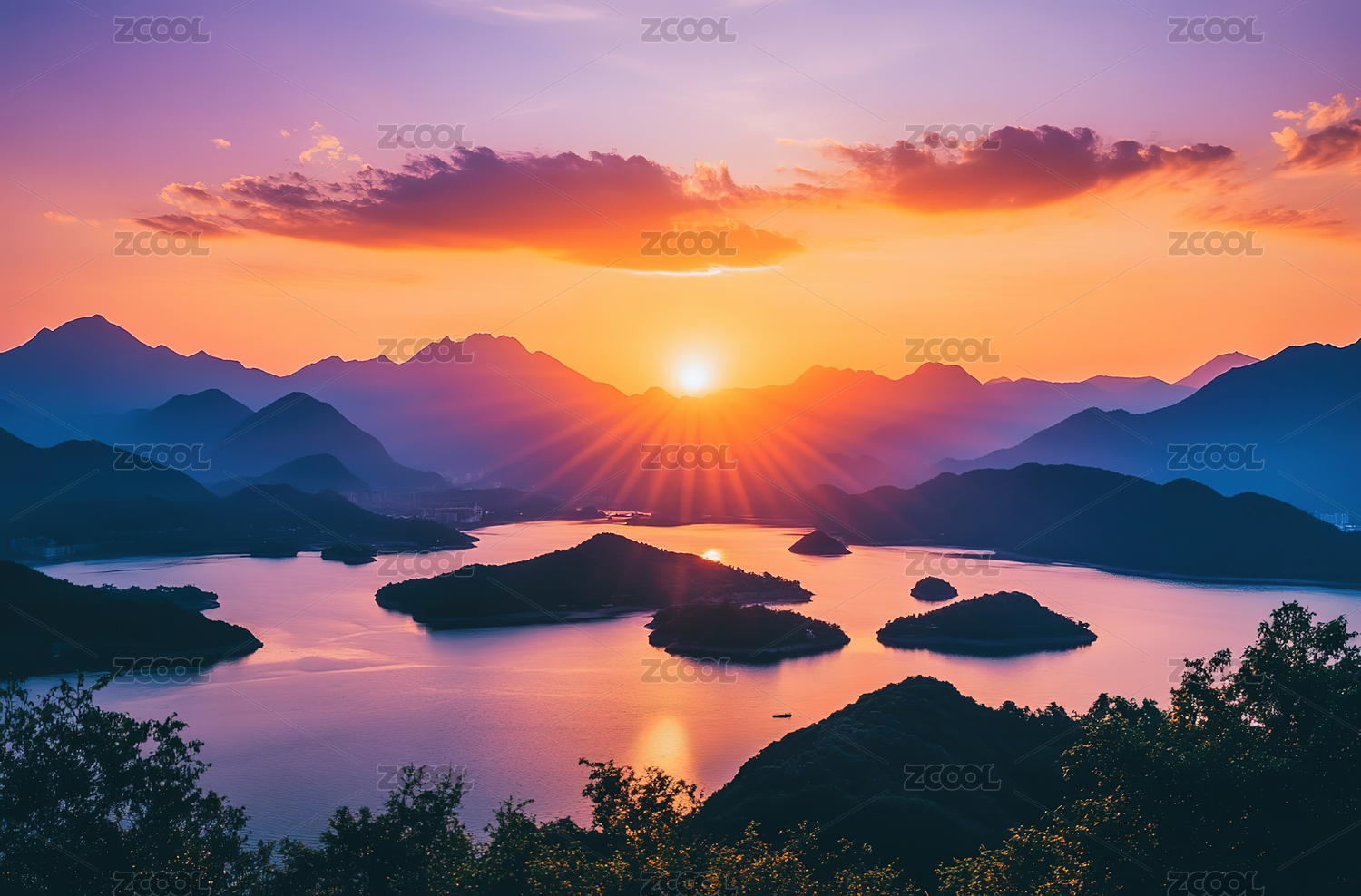 水库,湖泊,日落,山脉,山峦,丘陵,江南,山水,晚霞