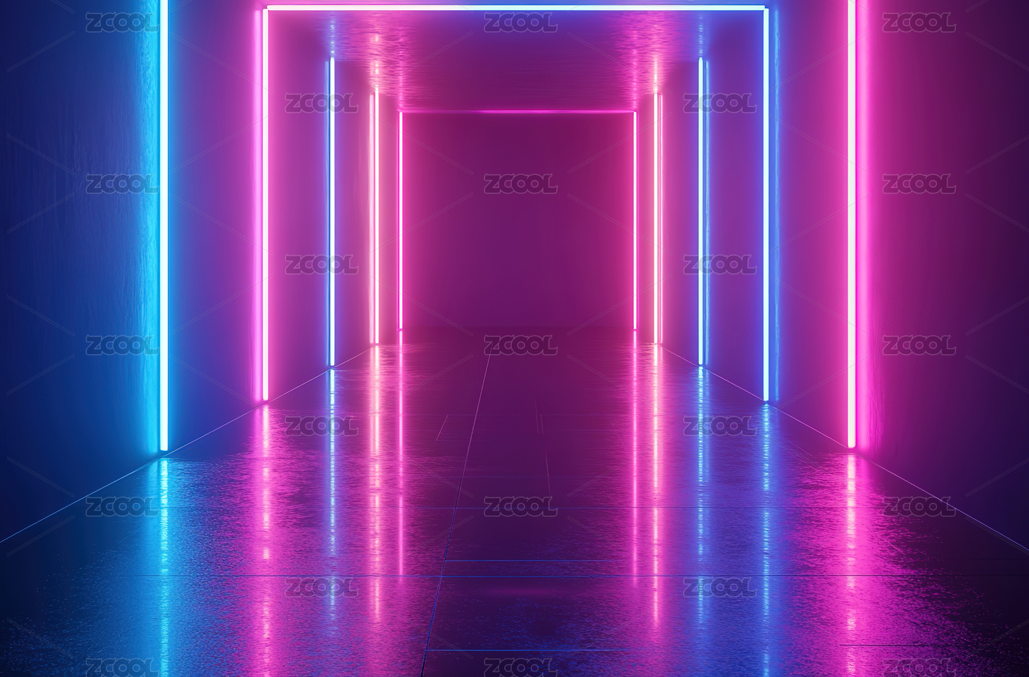 霓虹灯框的未来感走廊