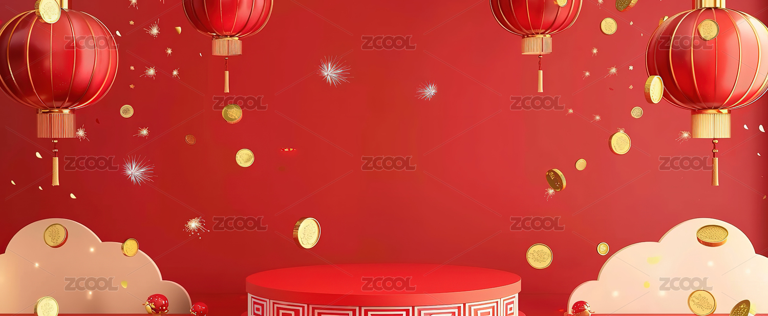 红色喜庆有灯笼传统元素及产品平台的新年背景