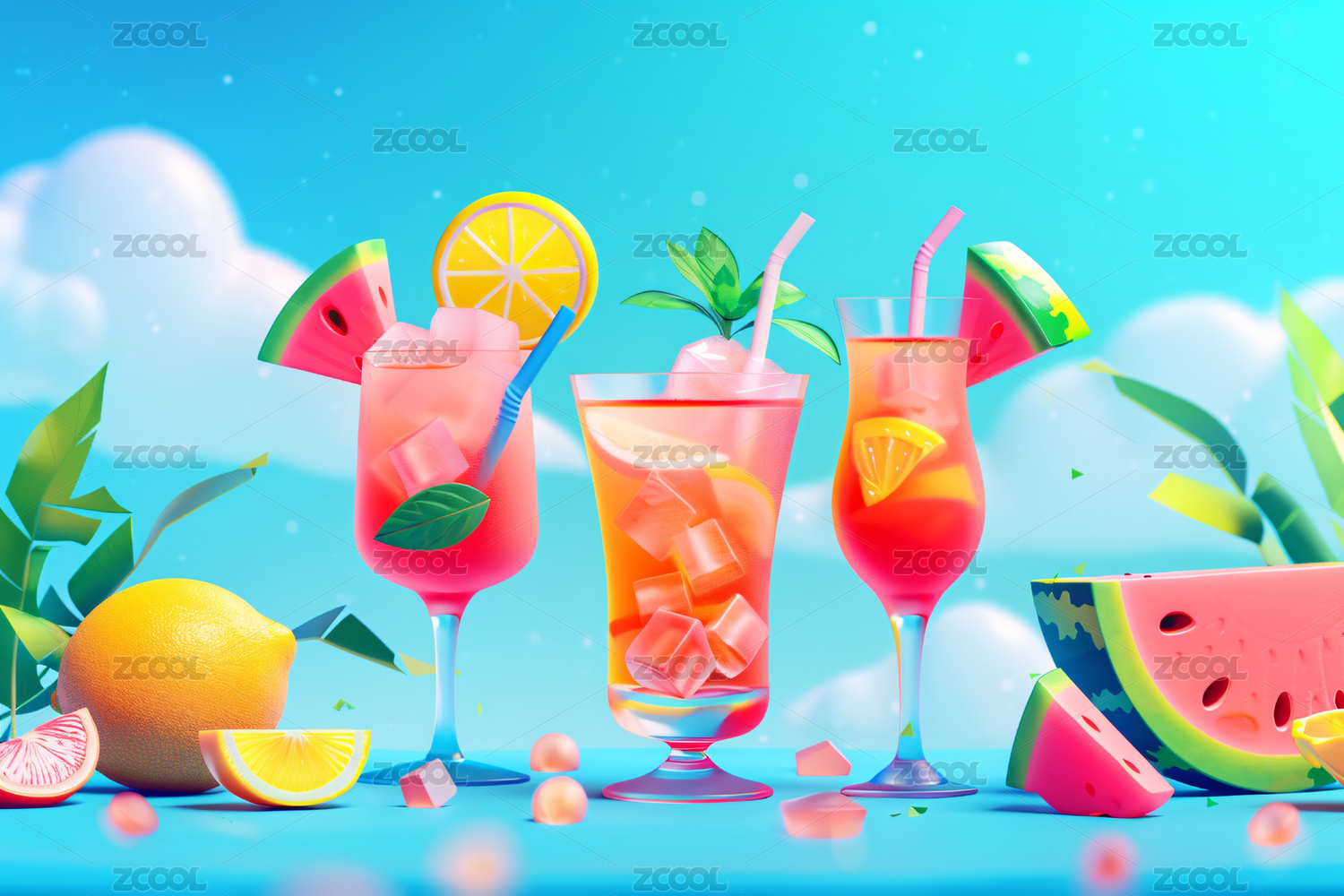 3D卡通夏日冷饮饮品插画