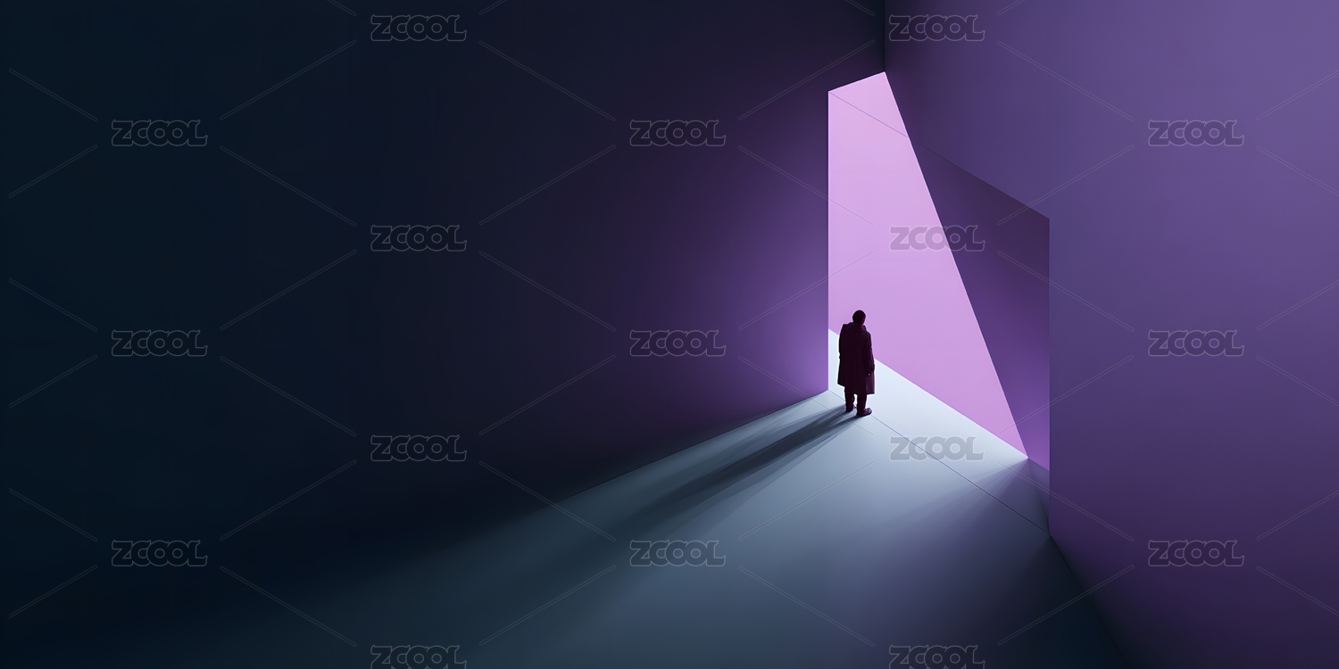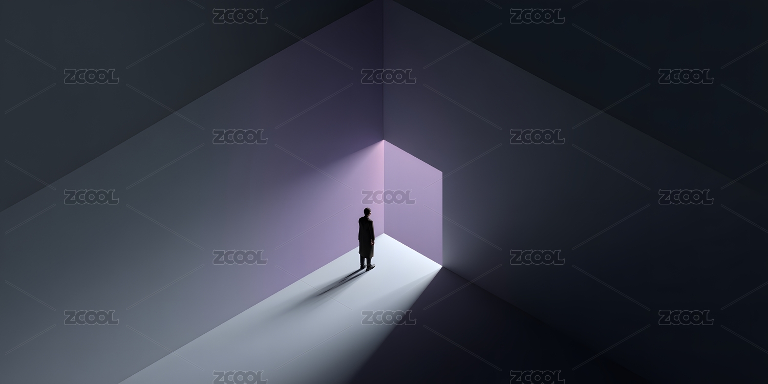 人影立几何空间朝向亮光呈现极简抽象艺术氛