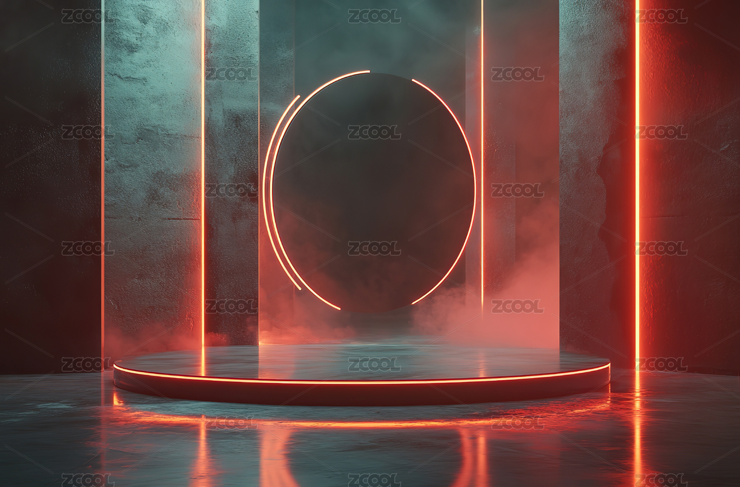 红色圆形舞台和拱门室内场景