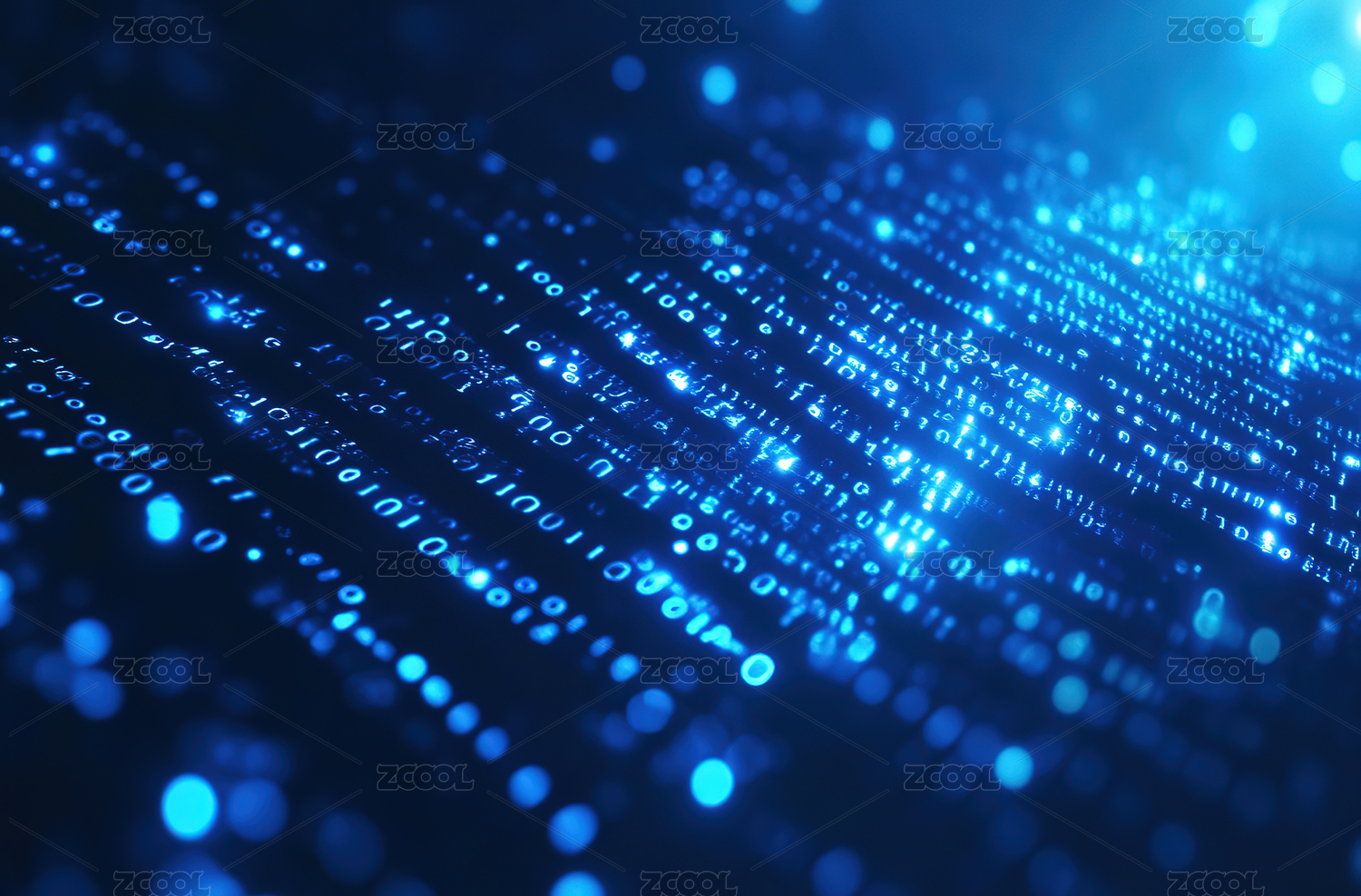数字浪潮中的蓝色光点
