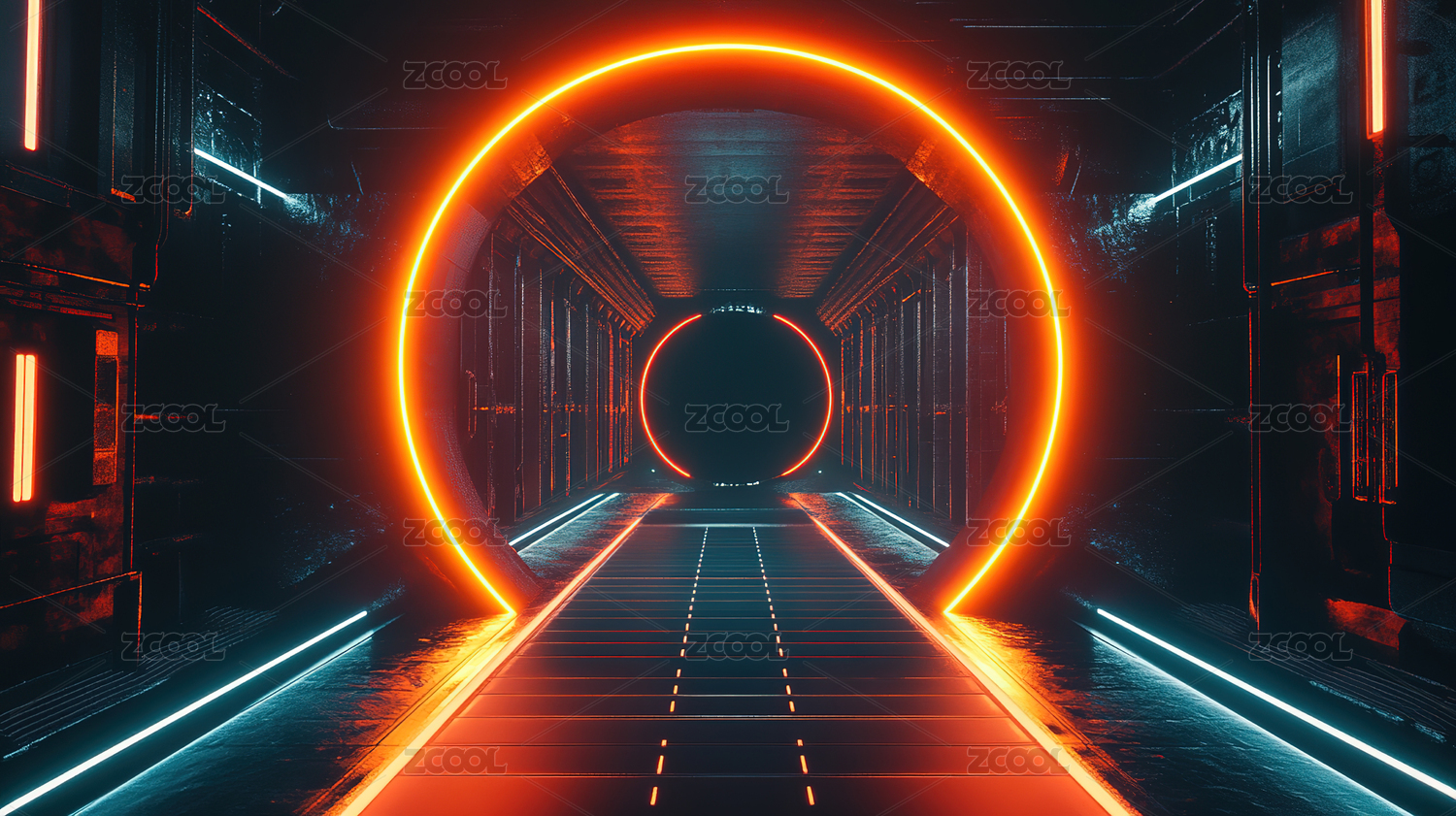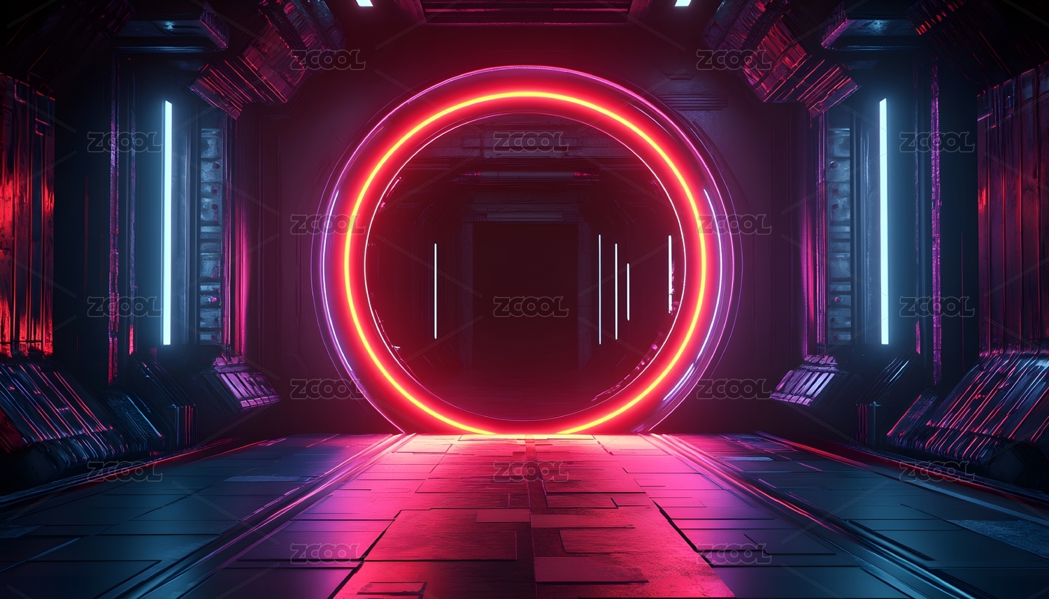 霓虹灯场景科技感空间赛博朋克3D抽象背景