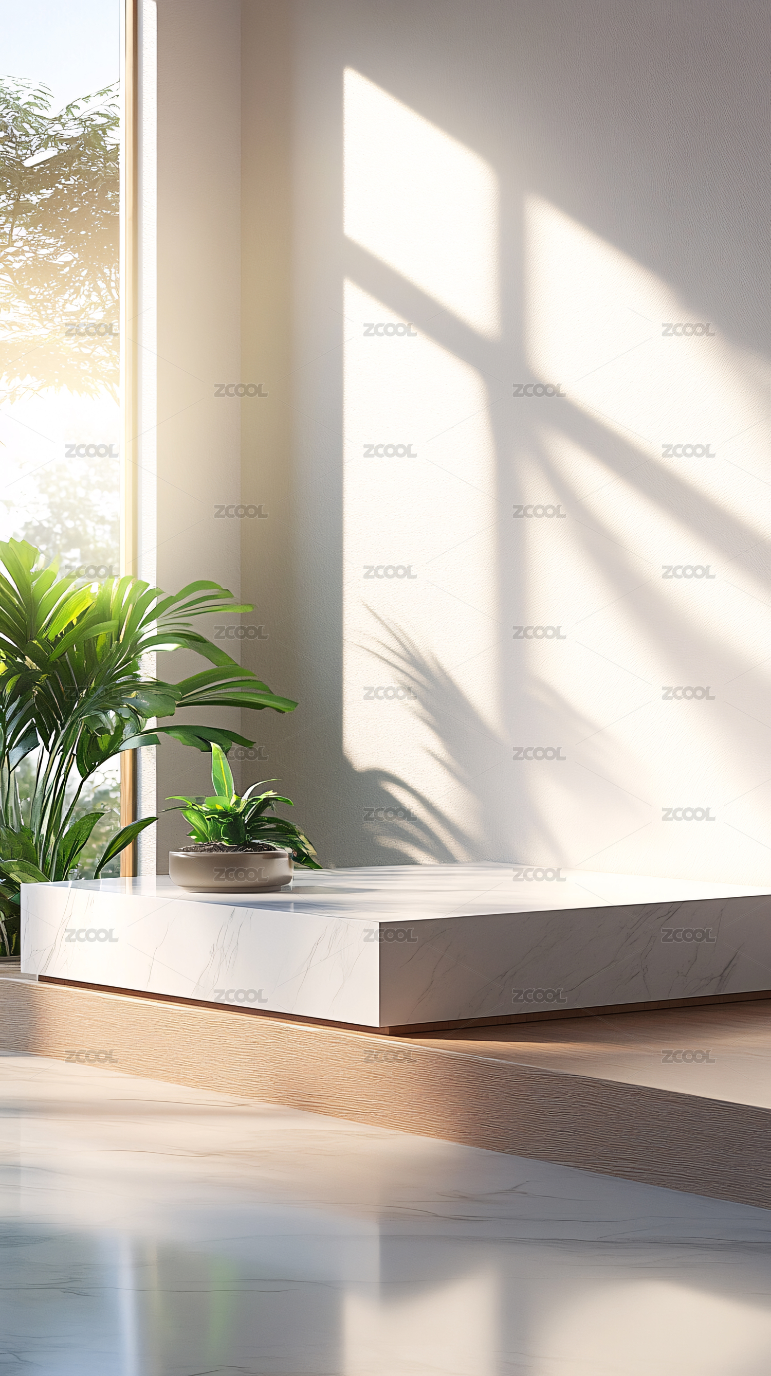 阳光透过百叶窗洒在整洁的办公桌上