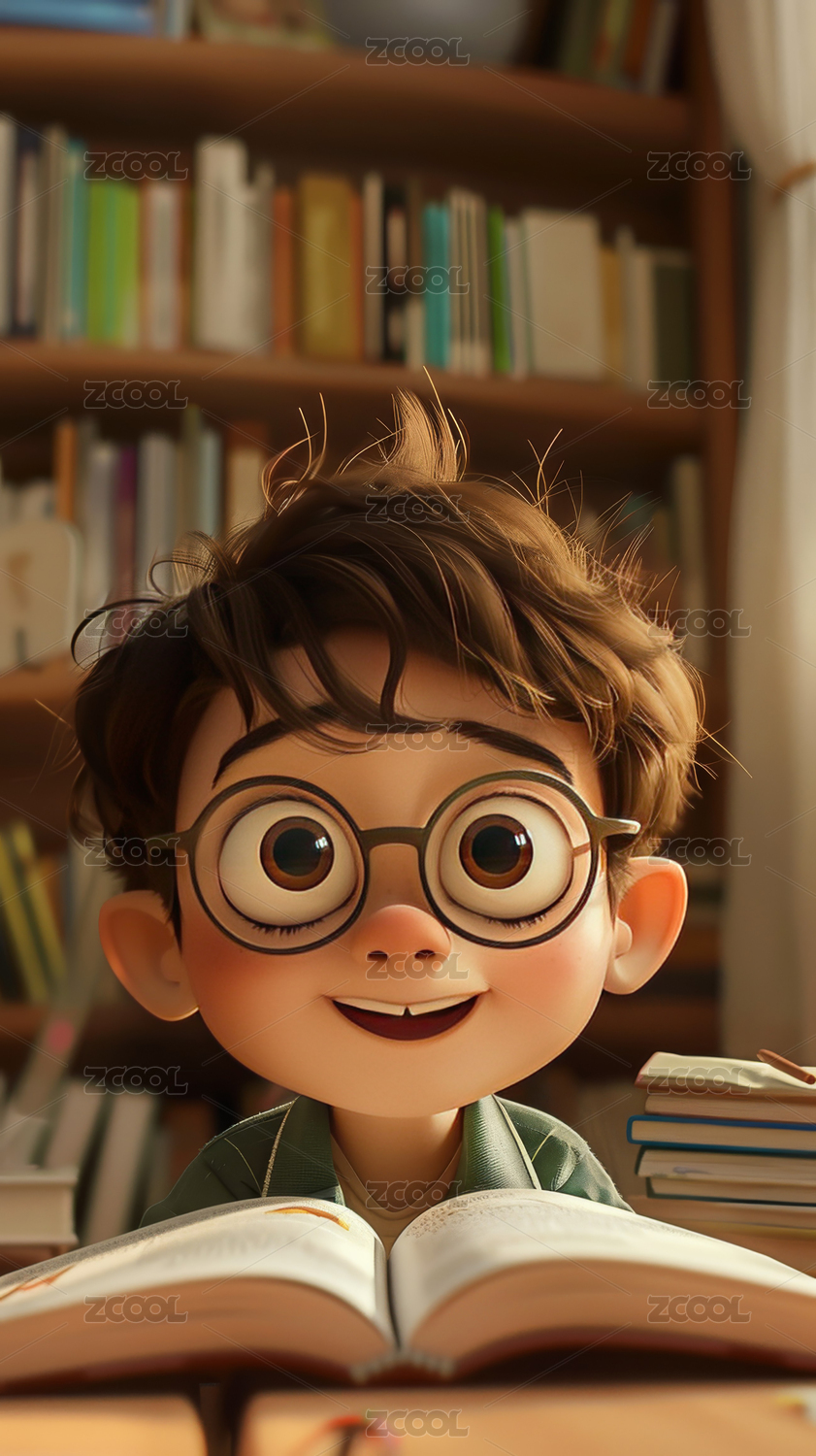 3D男孩看书学习