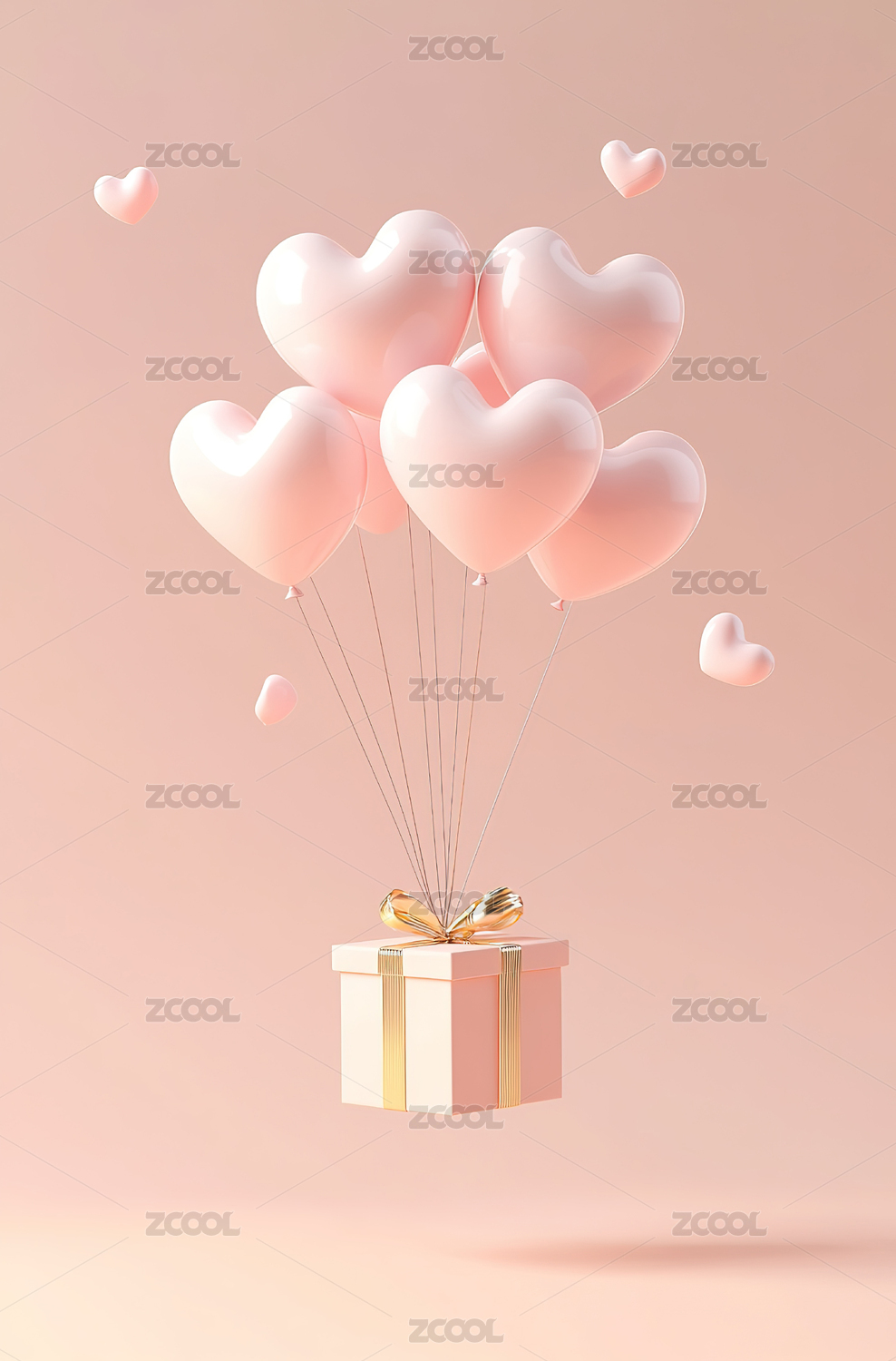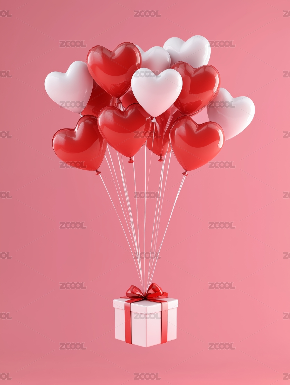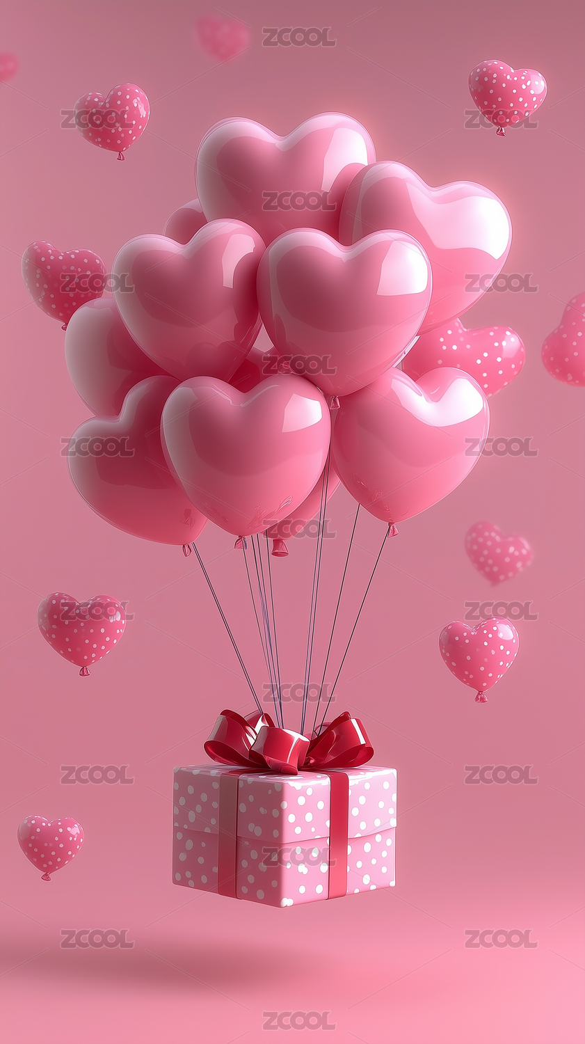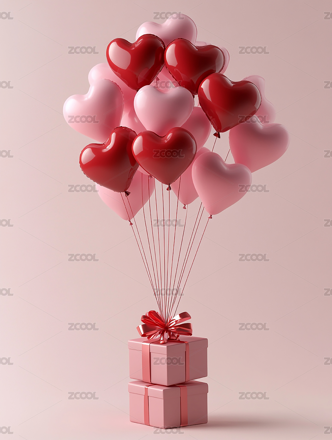 圣诞节爱心形状气球挂着粉色礼盒插画