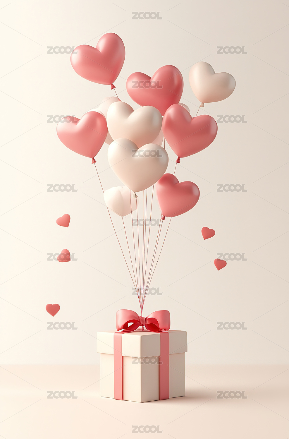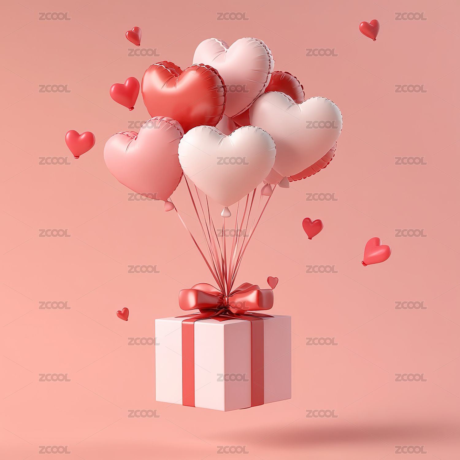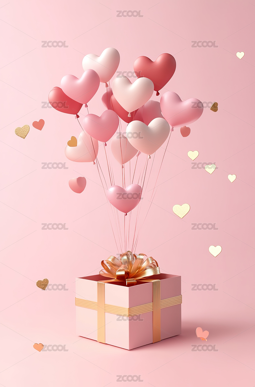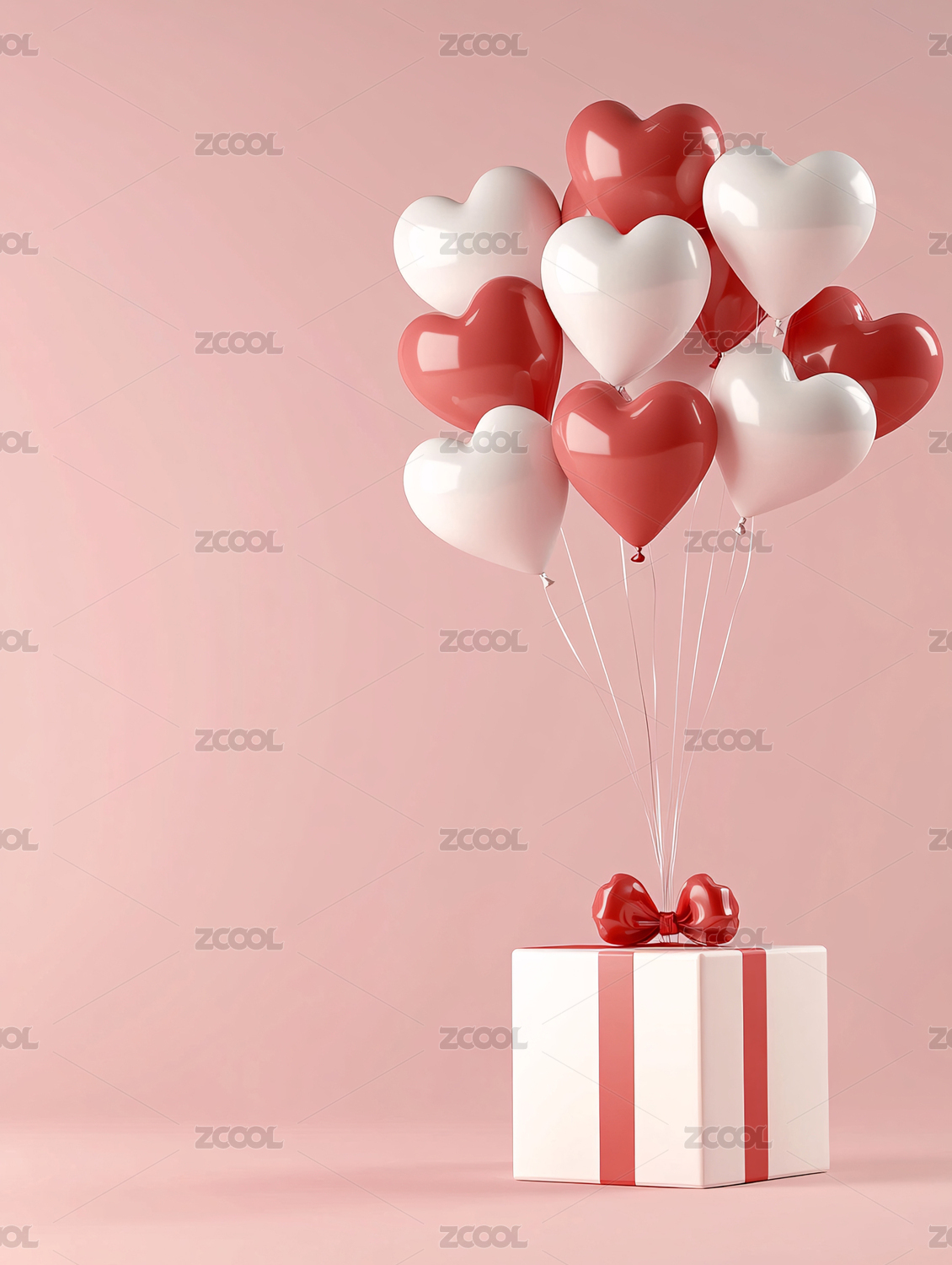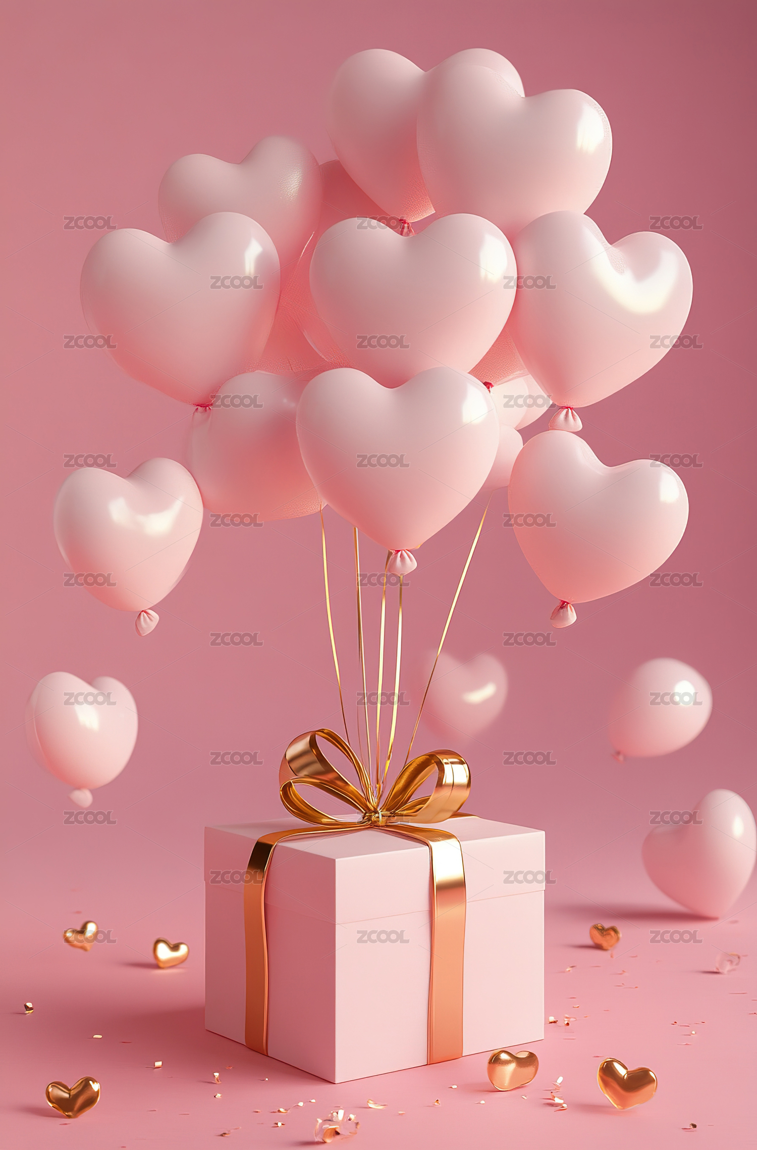 圣诞节爱心形状气球挂着粉色礼盒插画