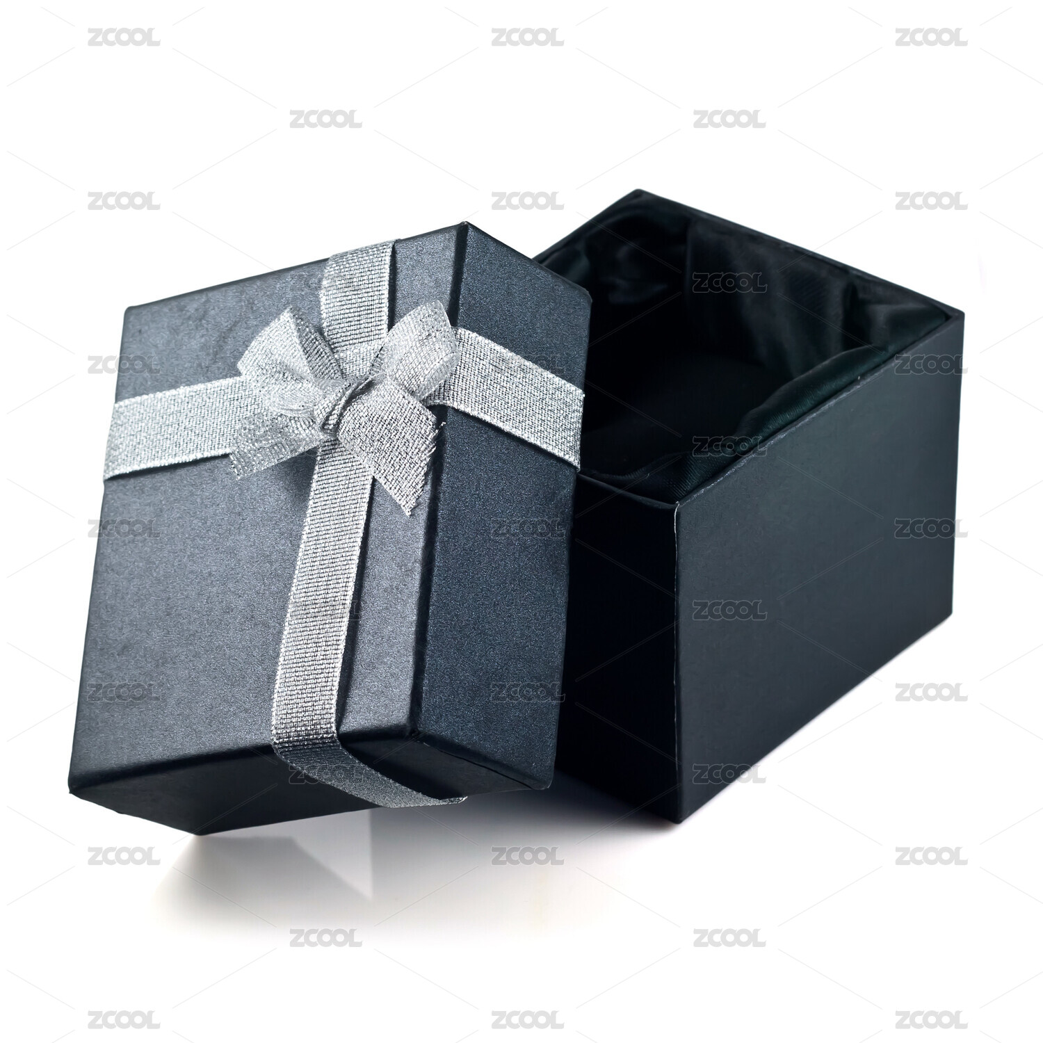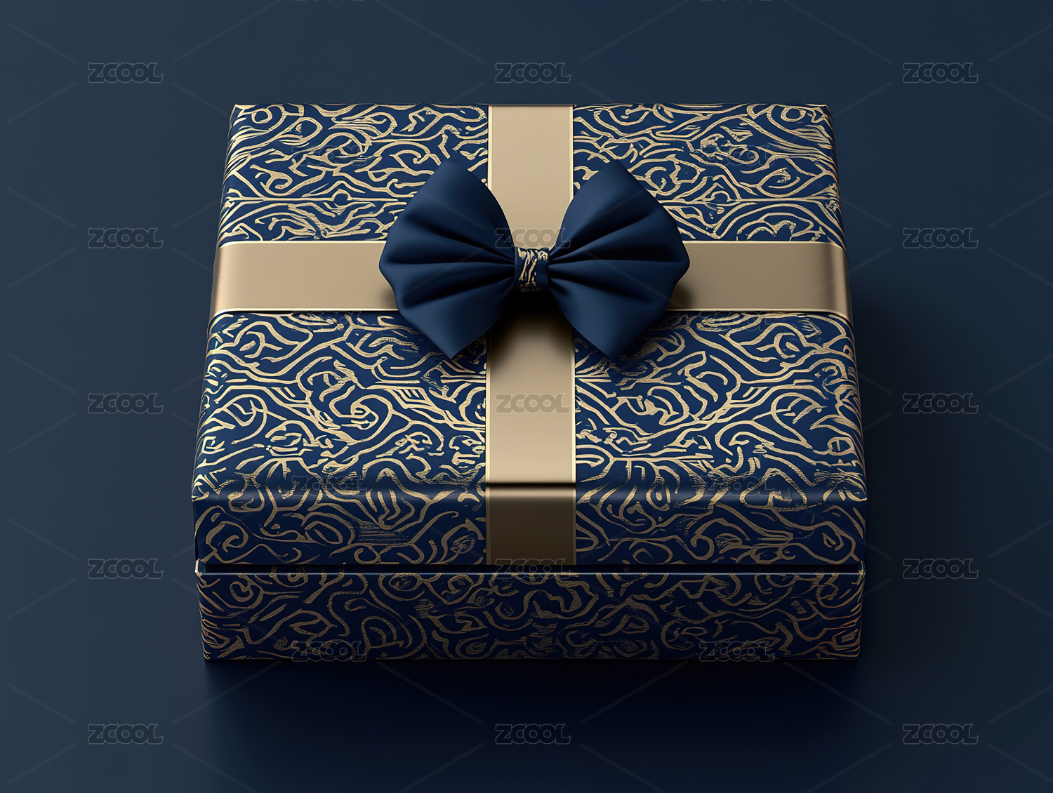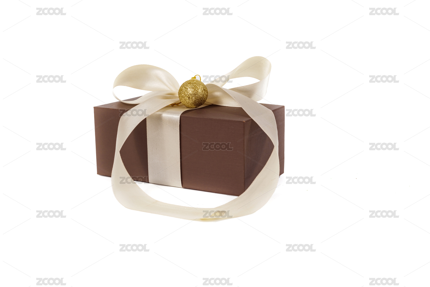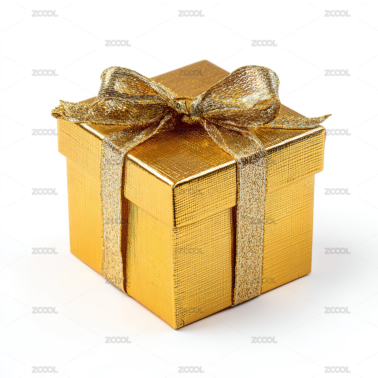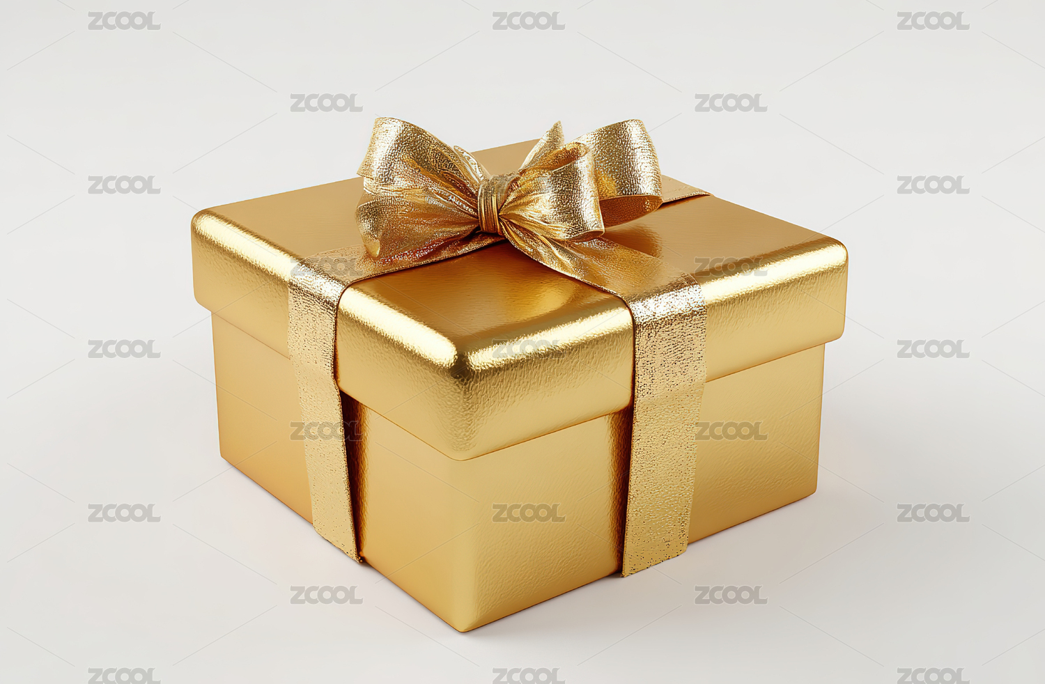 白色背景下一个红色与金色彩带交替的礼品礼物盒子