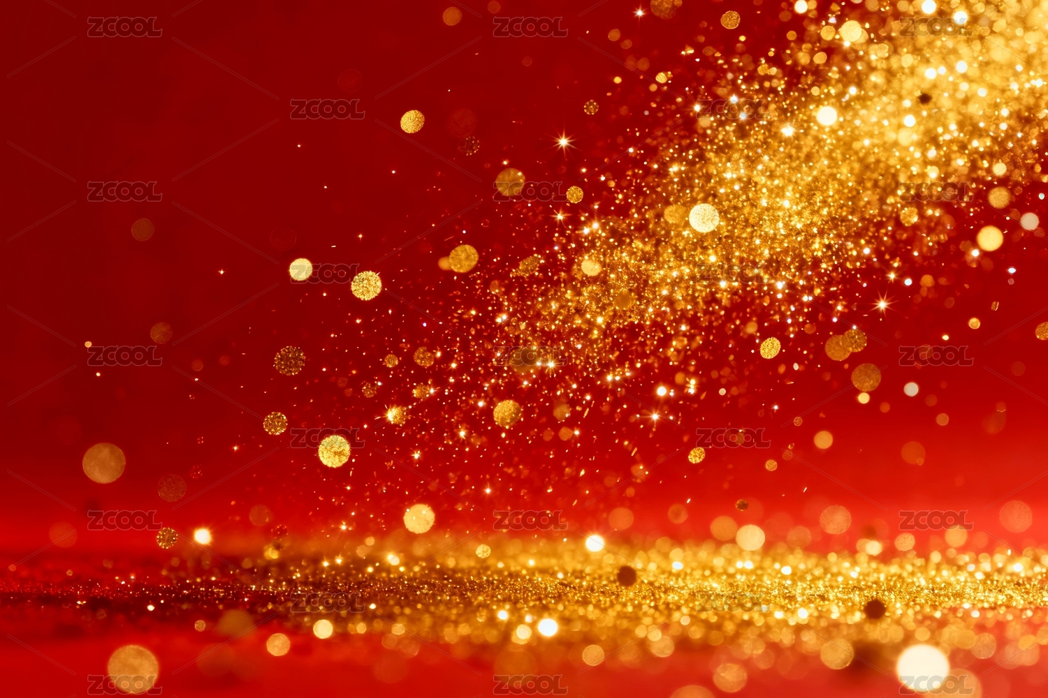 金色颗粒与红色背景的节庆氛围