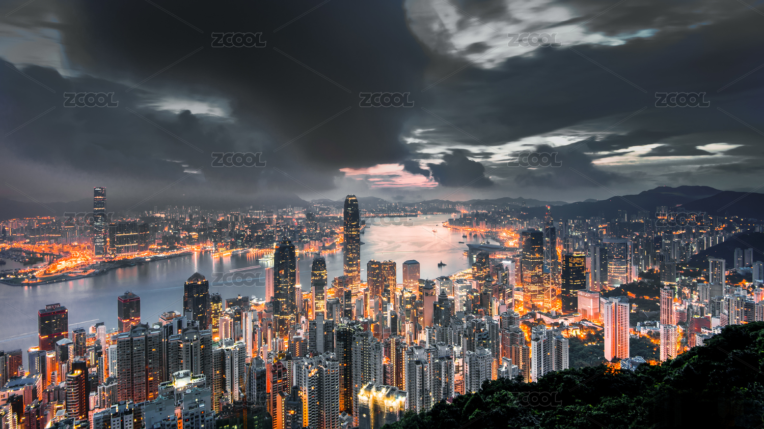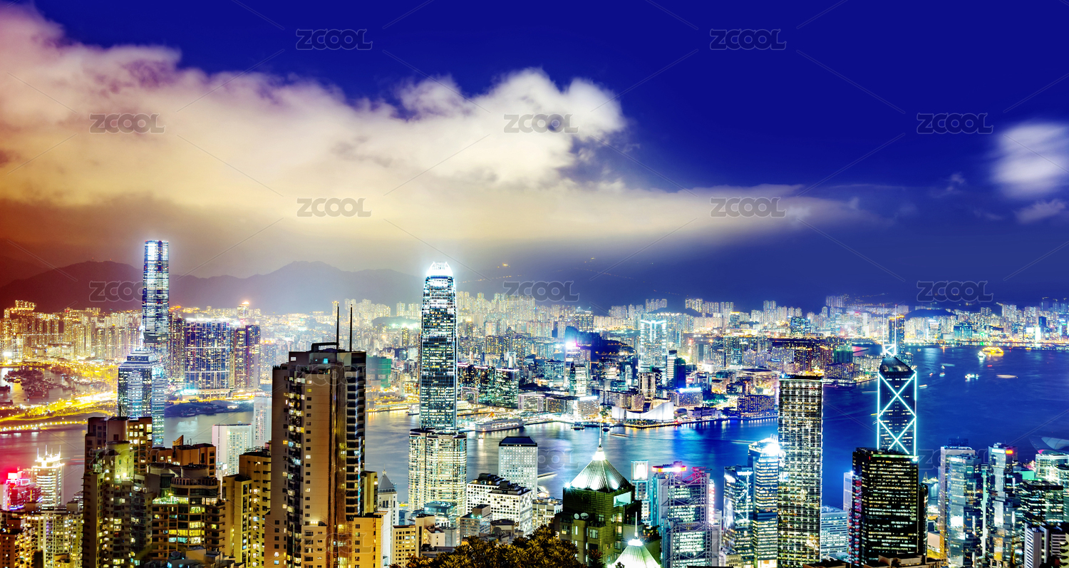 Hong Kong, Night, City, Landscape, China, Urban Scene, Aerial Vi,香港,城市景观,建筑