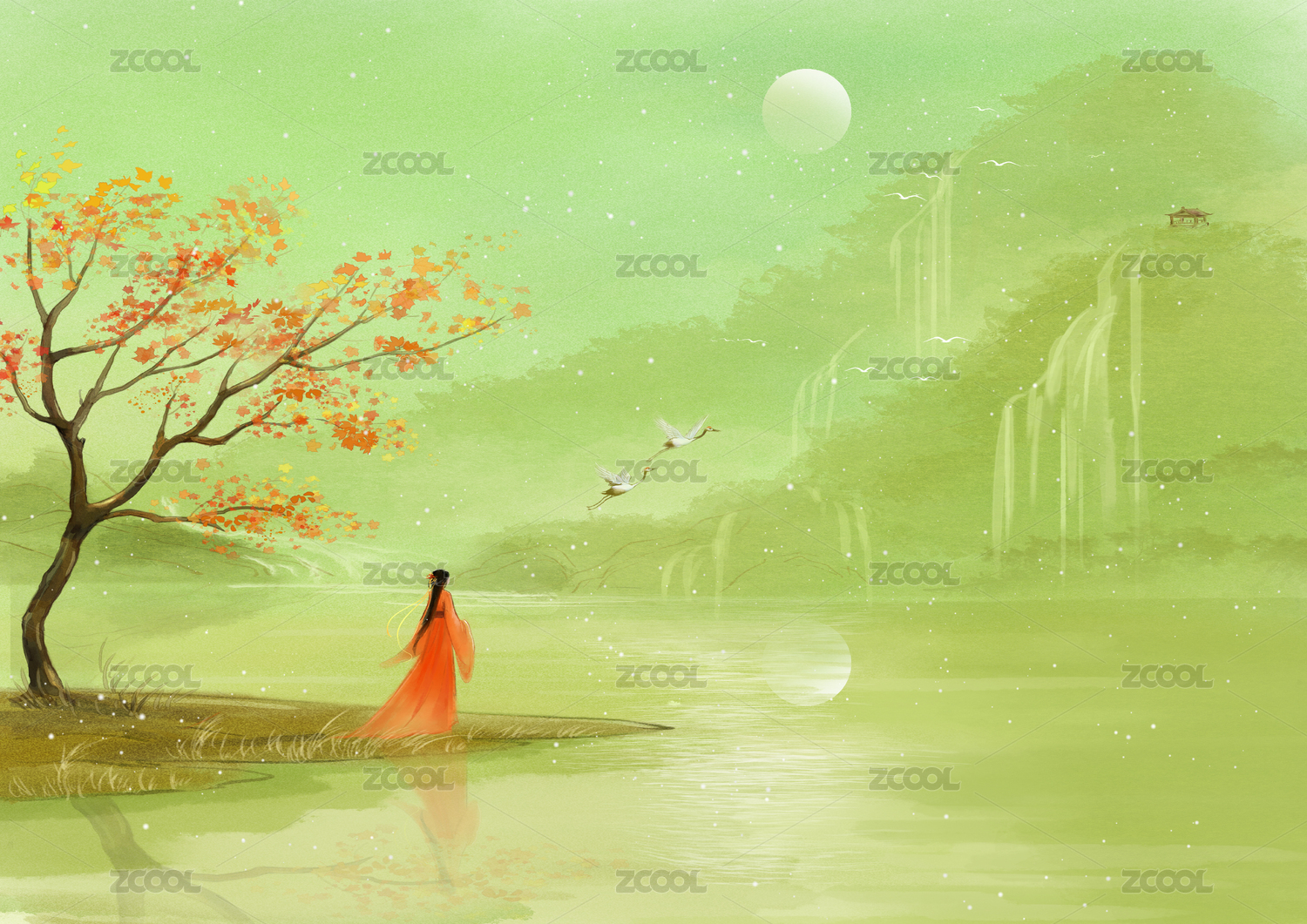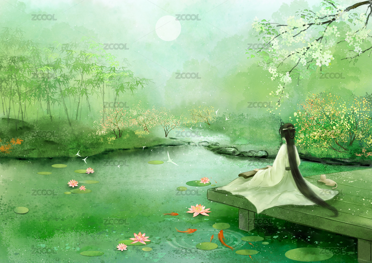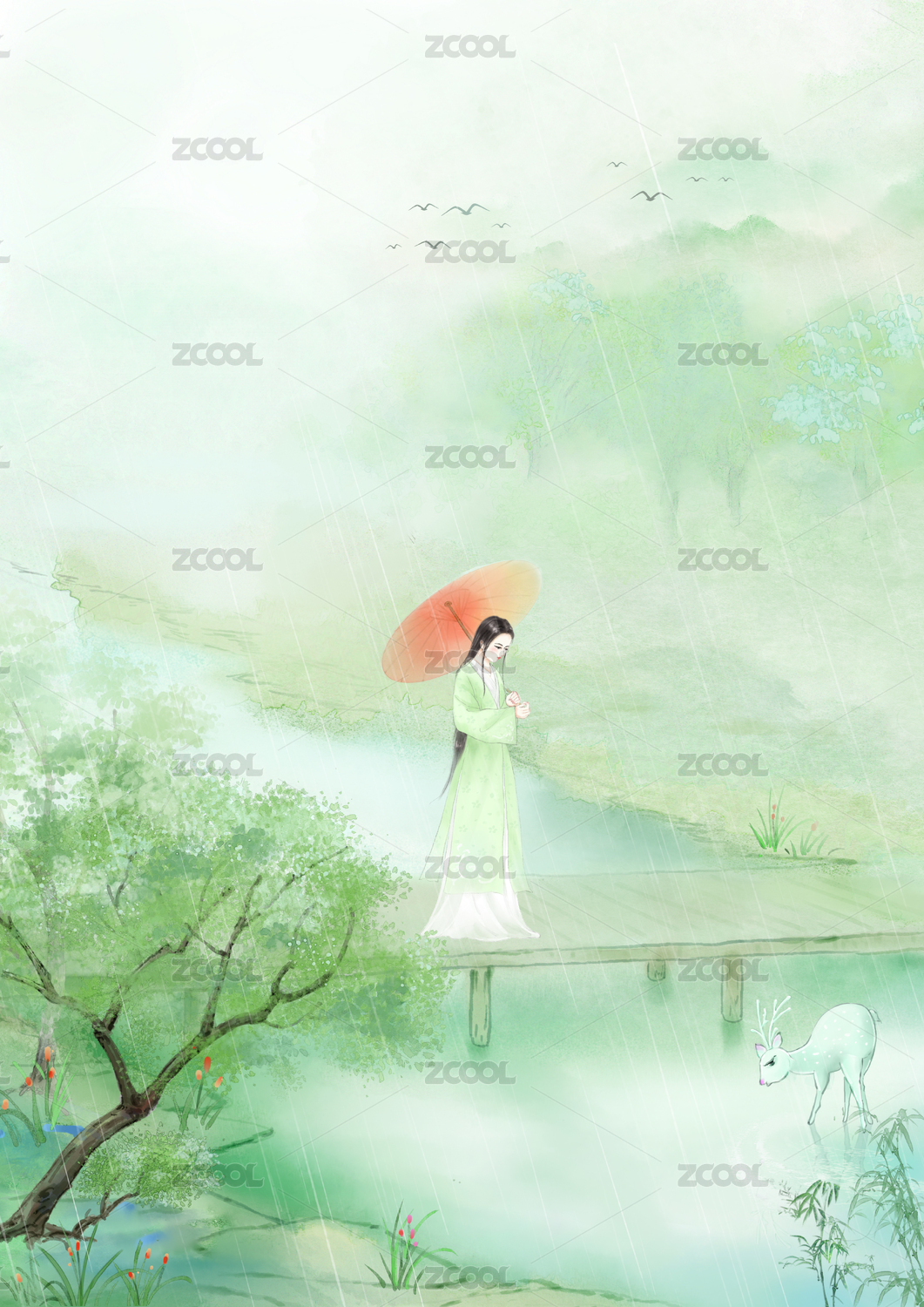 HEKMDTK202211,插画,二十四节气,春天,夏天,城楼,男子,女子,情侣,自然