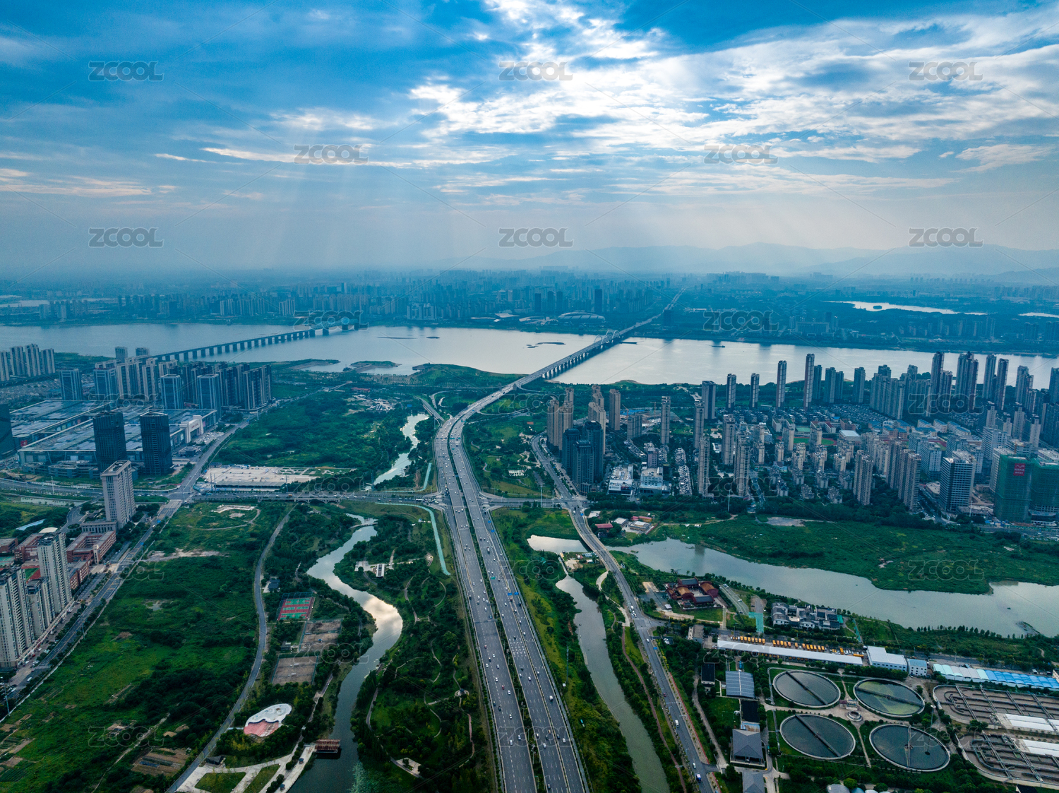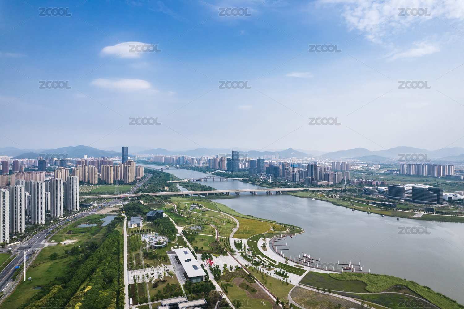 安徽省铜陵市滨江风光航拍图