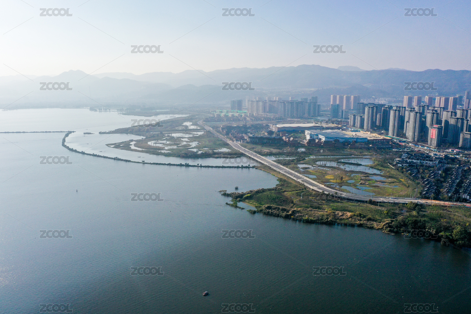 航拍中国云南昆明滇池草海
