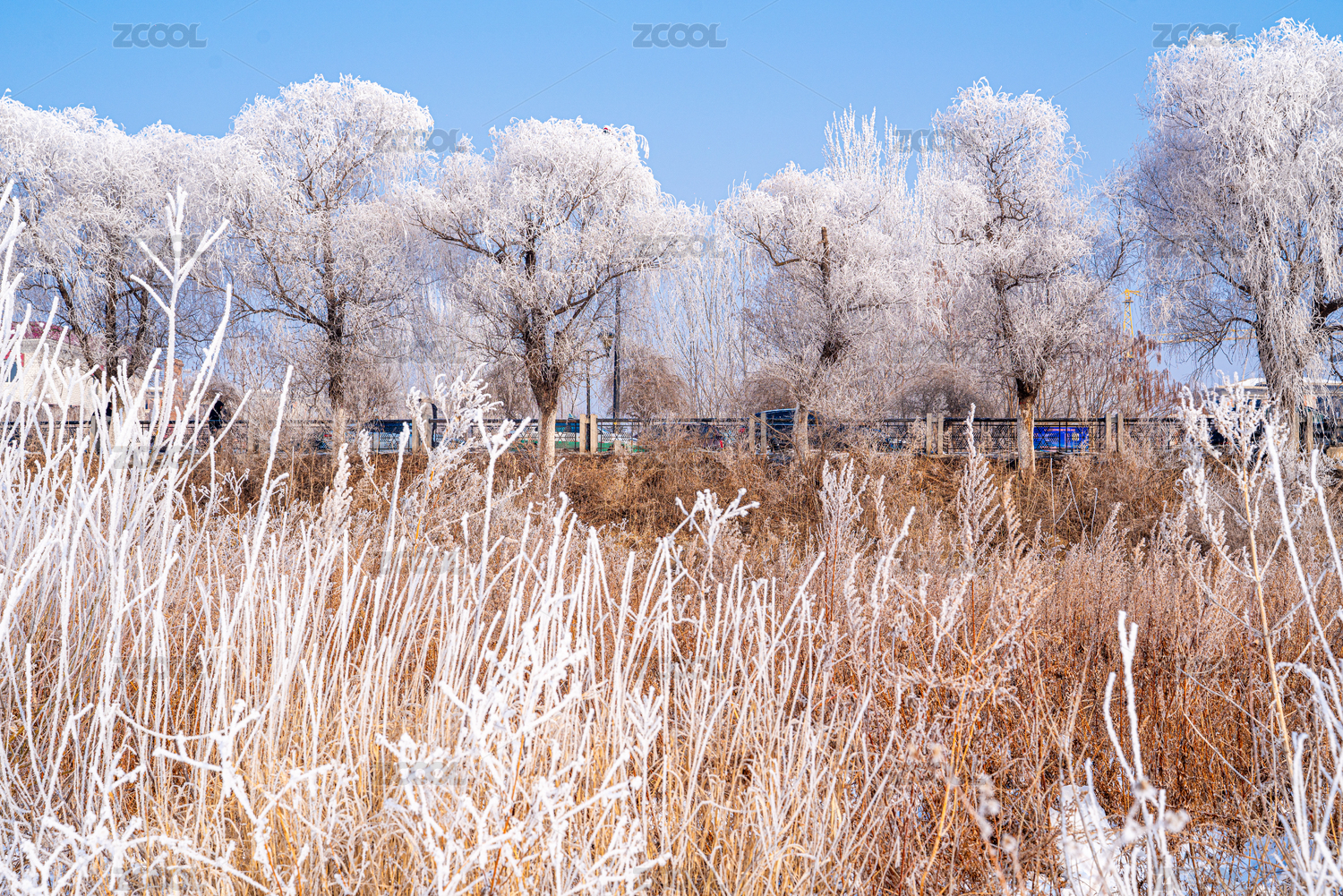 中国新疆伊犁州伊宁县天鹅泉雾凇景观