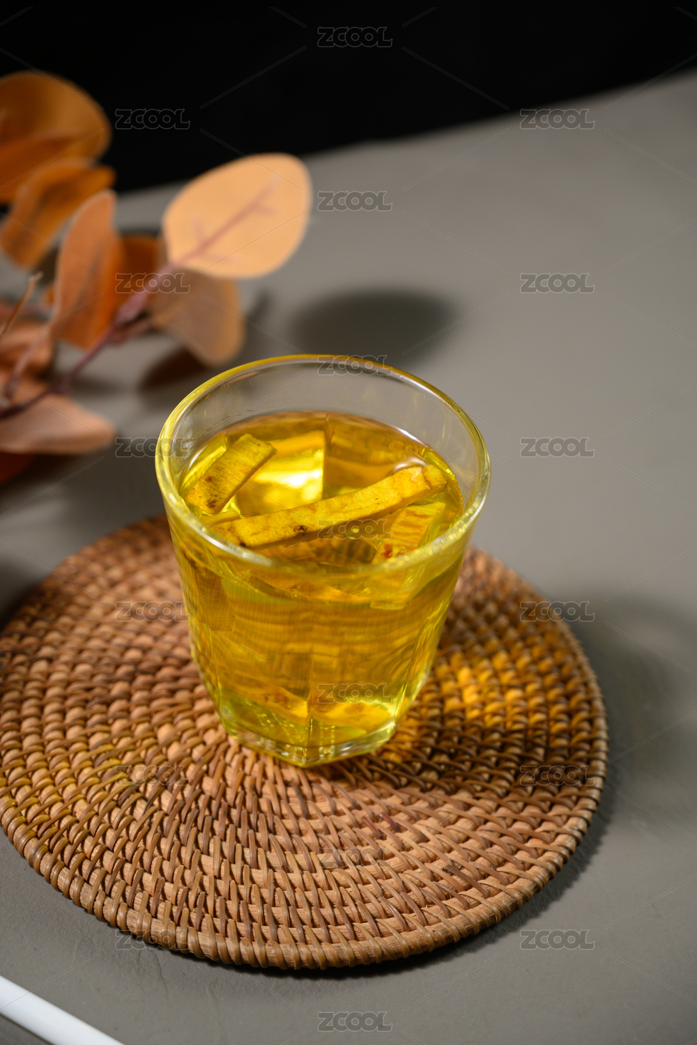 桌面上的杯子里的甘甜可口的胰岛果茶