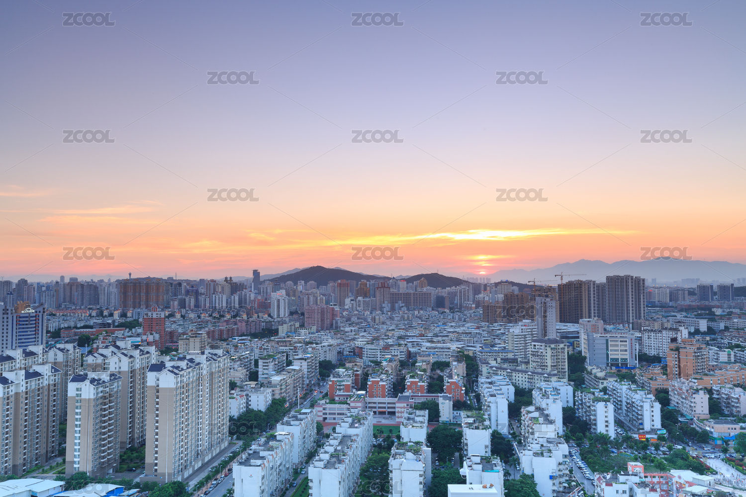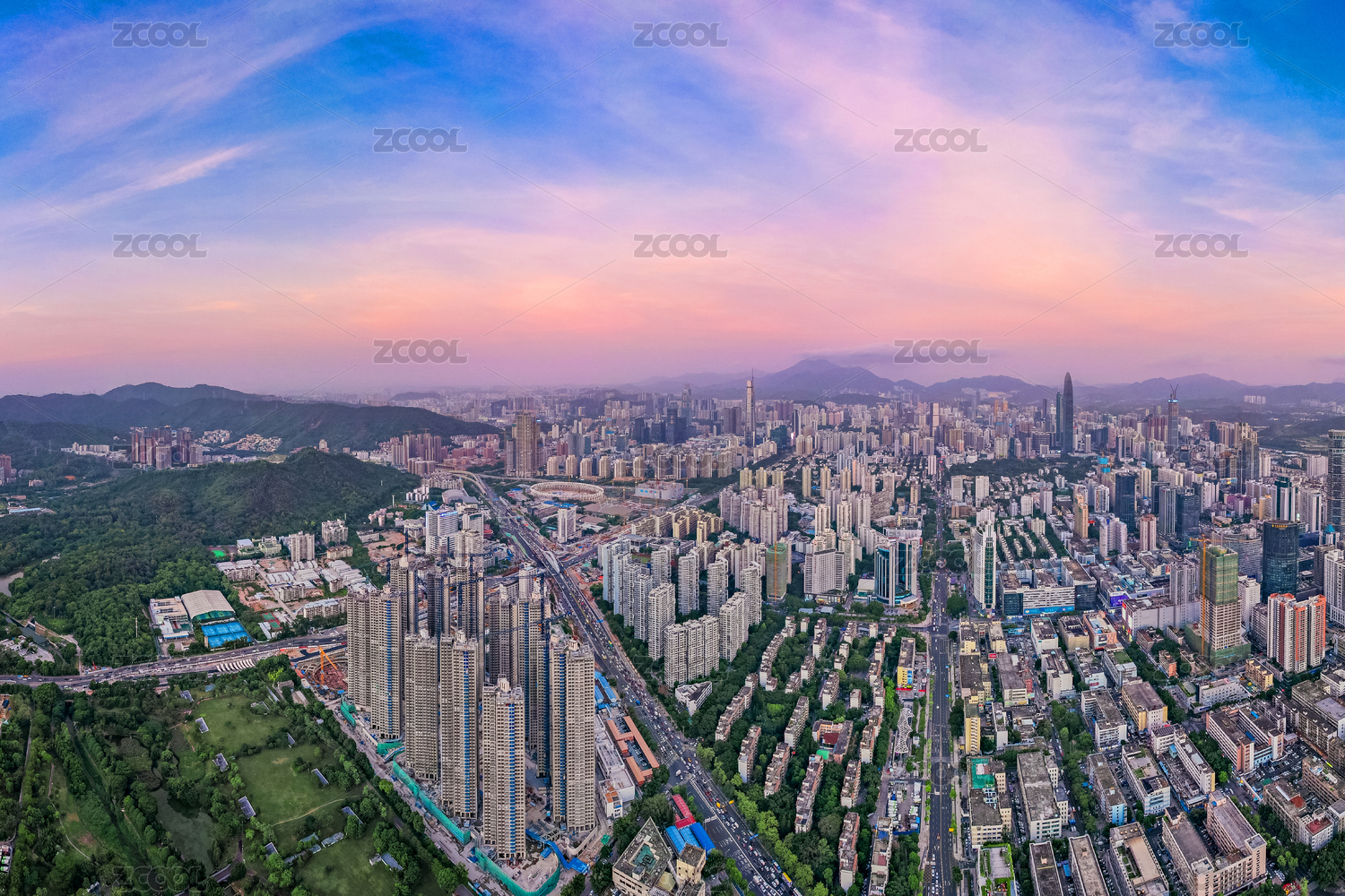 中国广东省深圳市罗湖区城市天际线黄昏风格