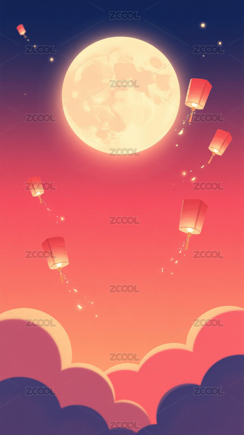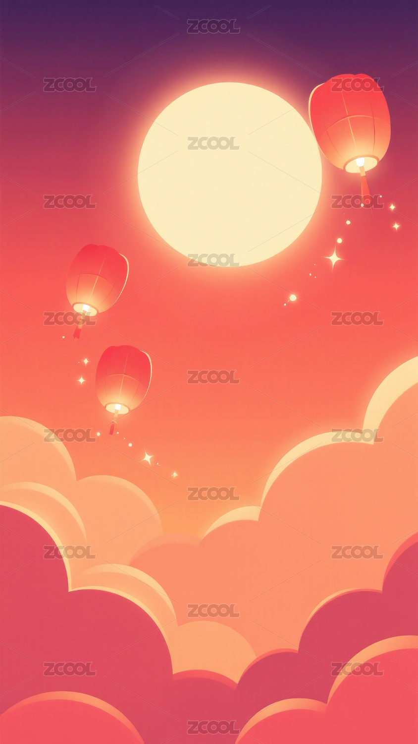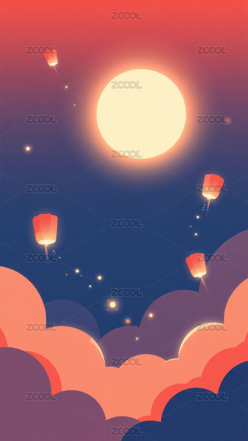 中秋节灯笼祥云创意花灯中国风节日插画背景