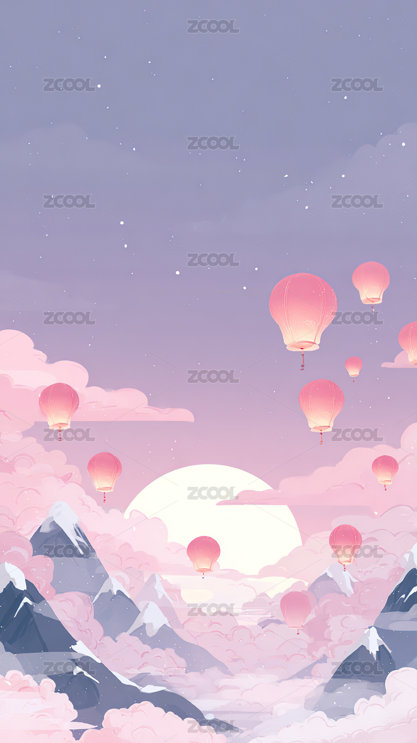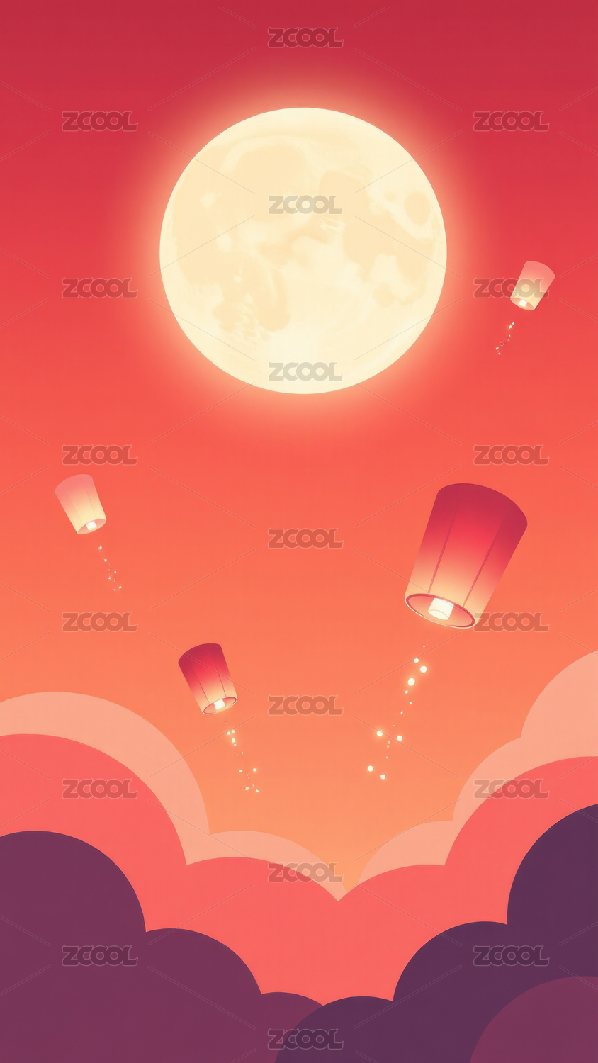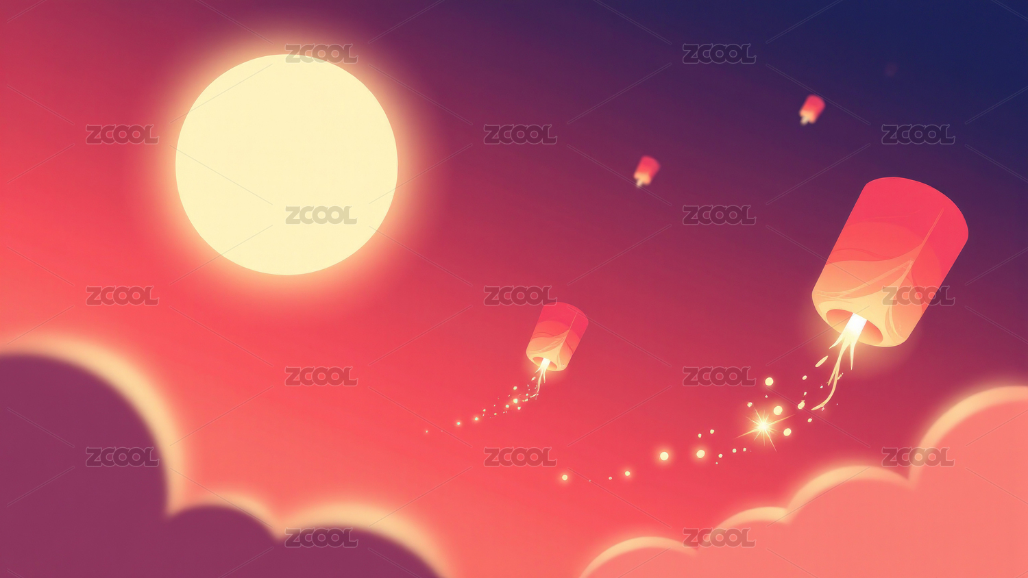中秋节灯笼祥云创意花灯中国风节日插画背景