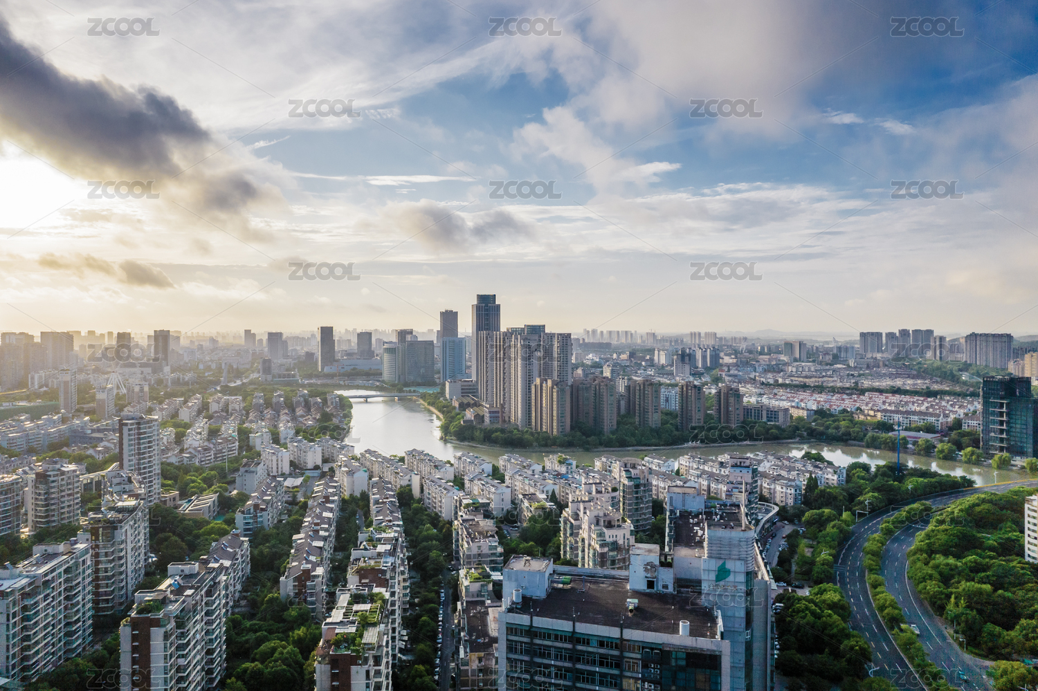 城市,天空,都市风景,航拍视角,船,运输,建筑,摩天大楼,建筑外部,云