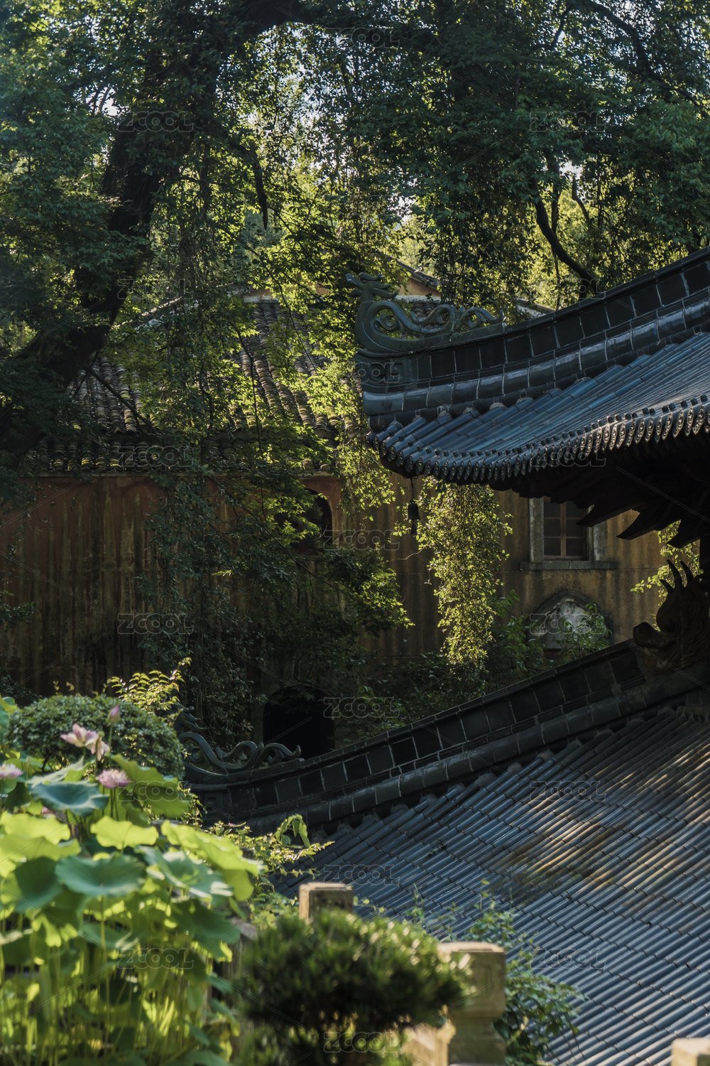 成都杜甫草堂博物馆古建筑屋檐青苔与银杏