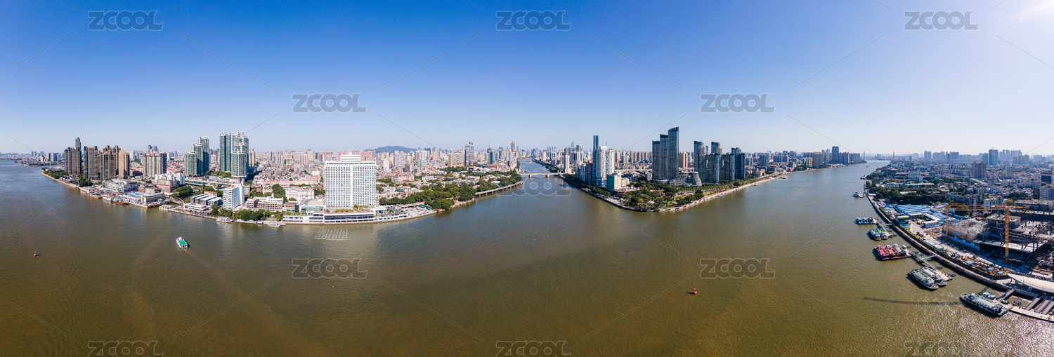 中国广州白鹅潭和沙面白天鹅宾馆全景