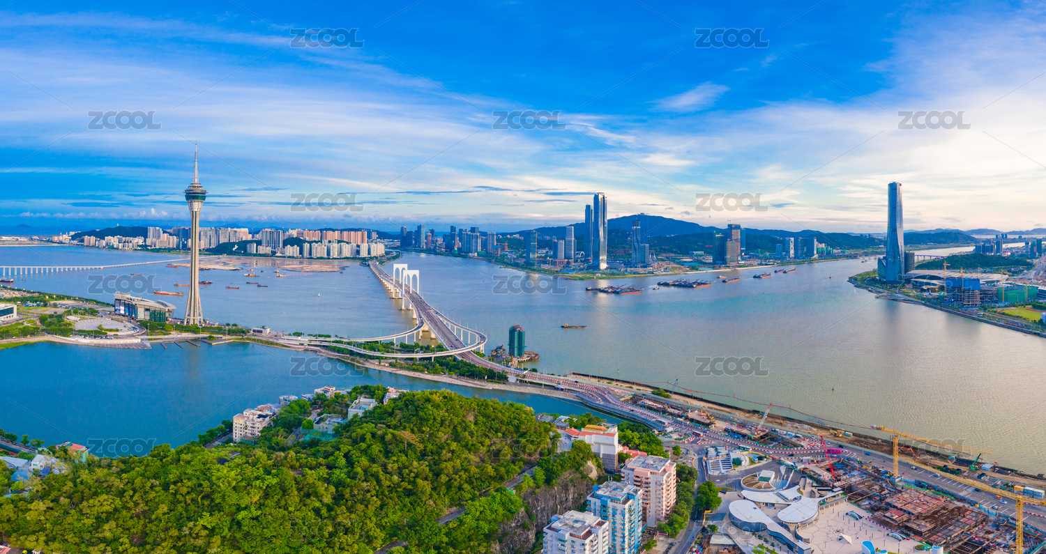 珠海市湾仔澳门环岛游珠海中心大厦航拍