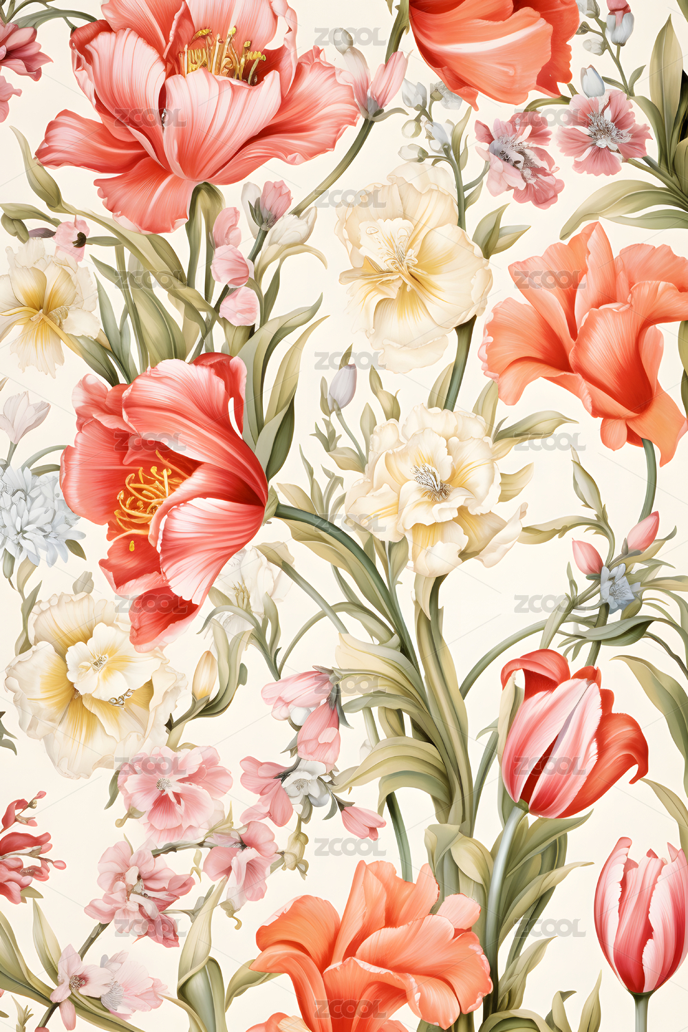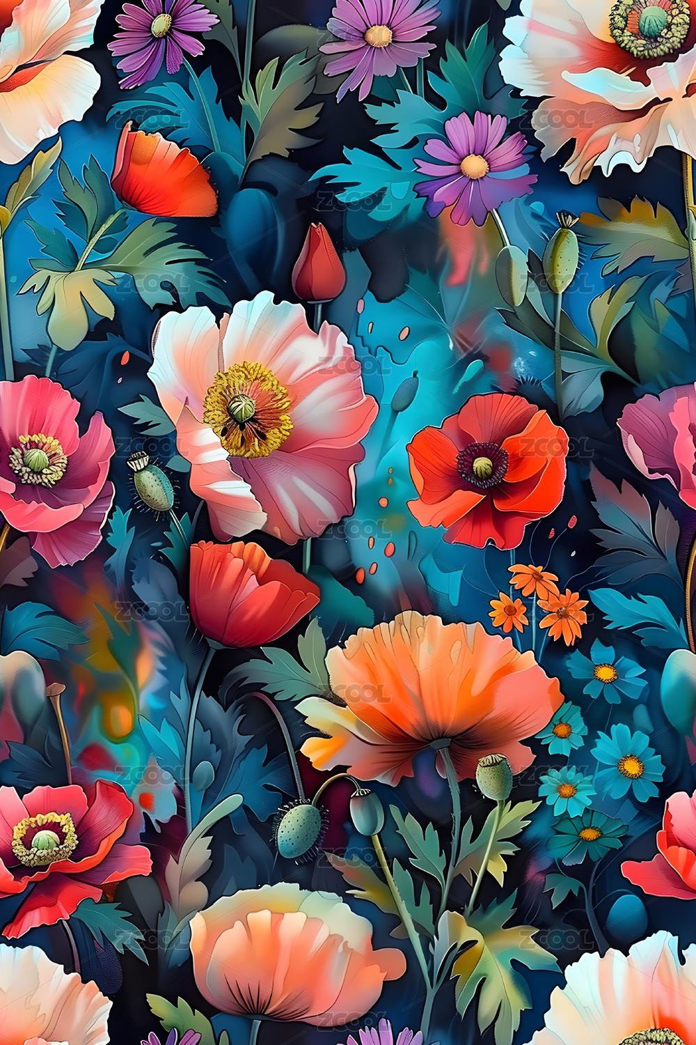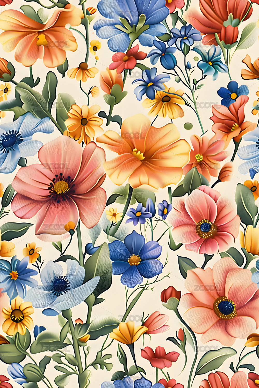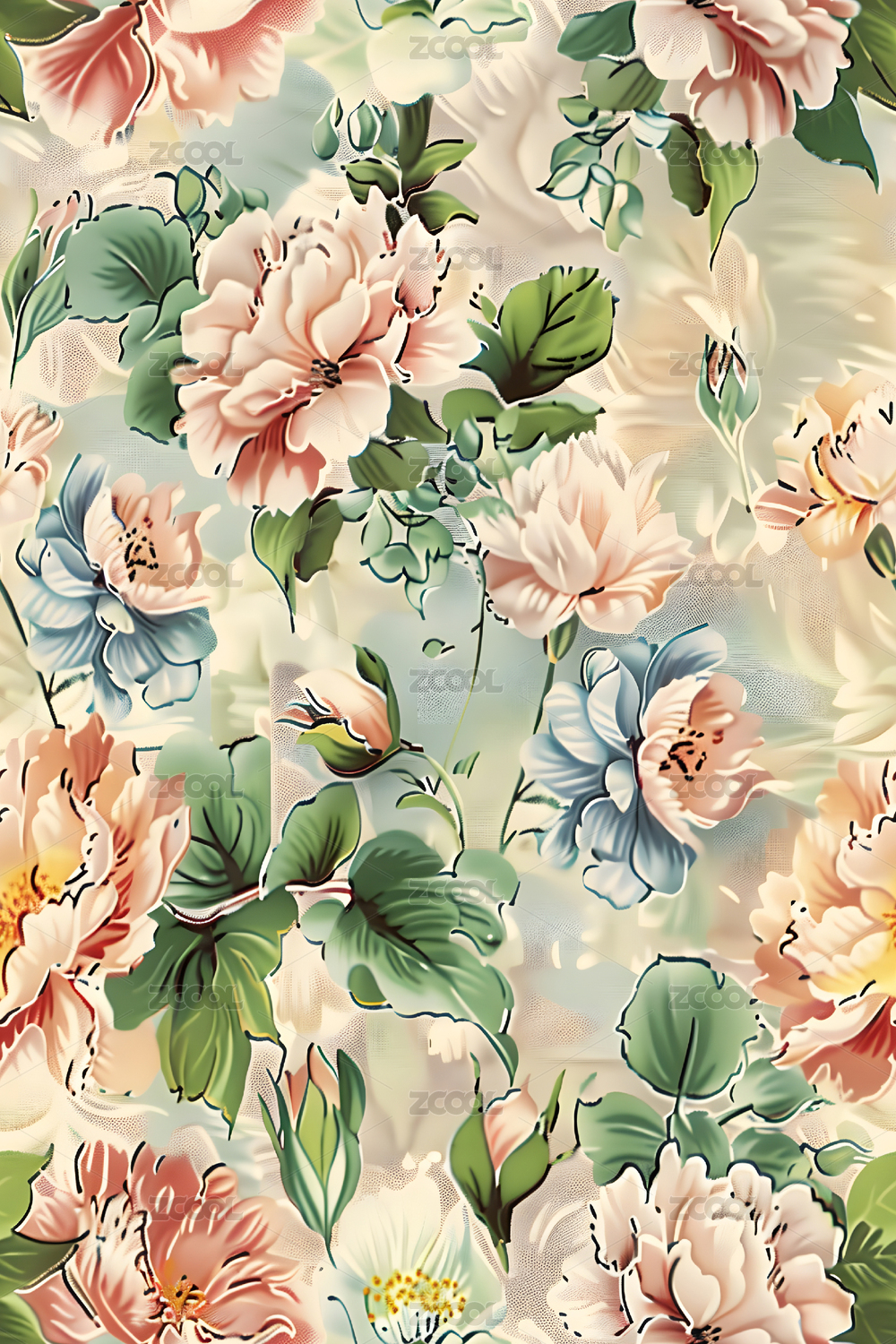 数码复古水彩花卉瓷砖图案抽象海报背景