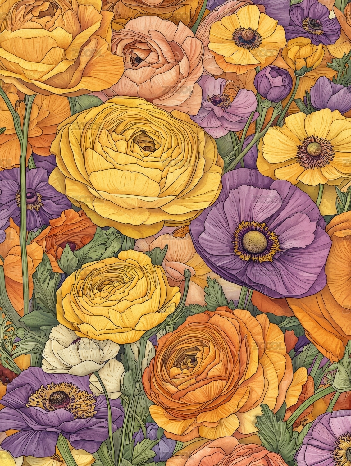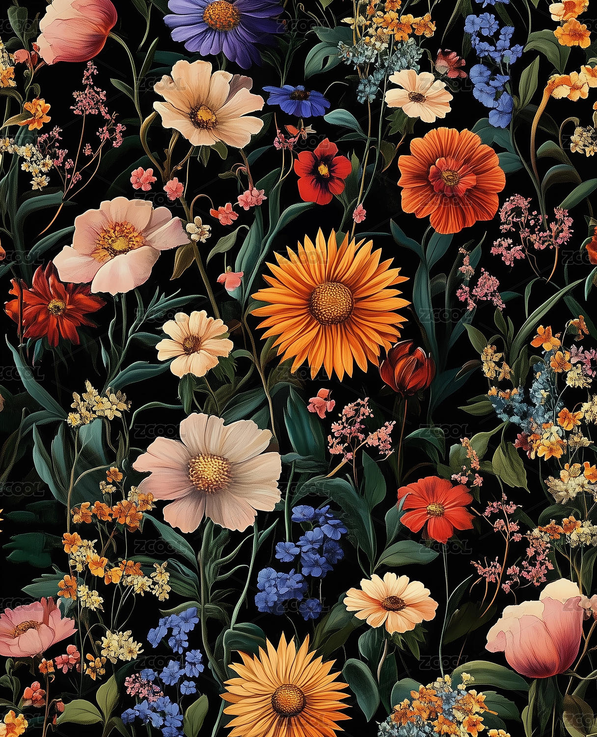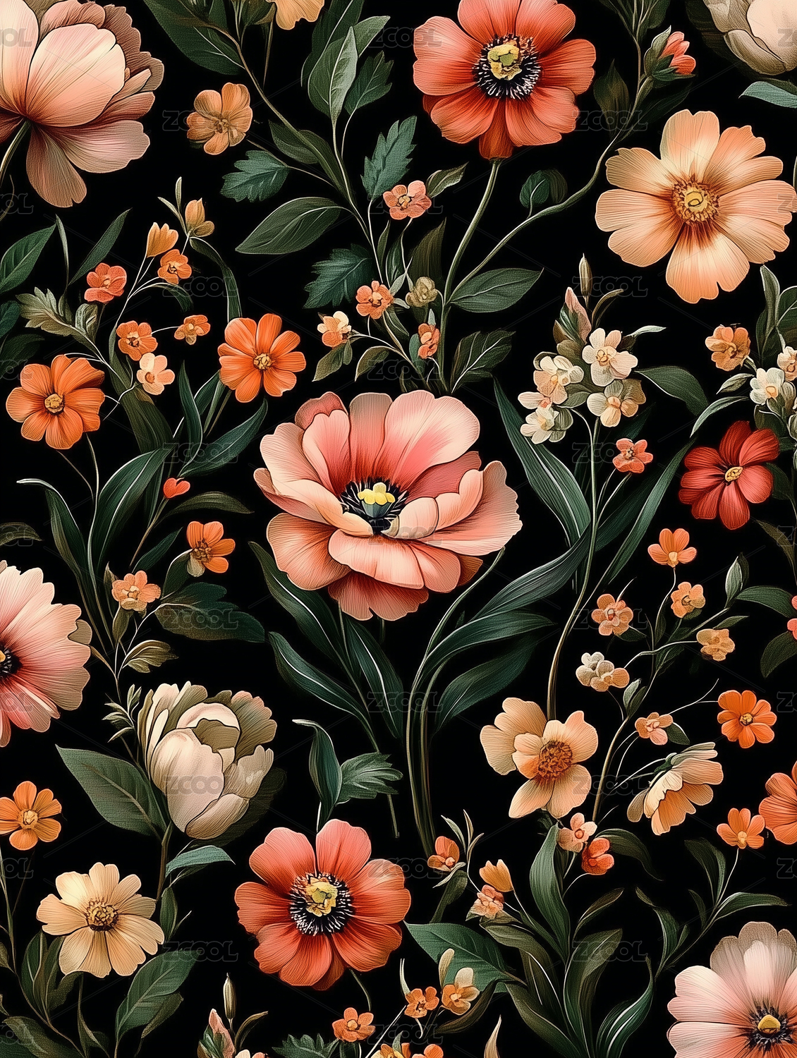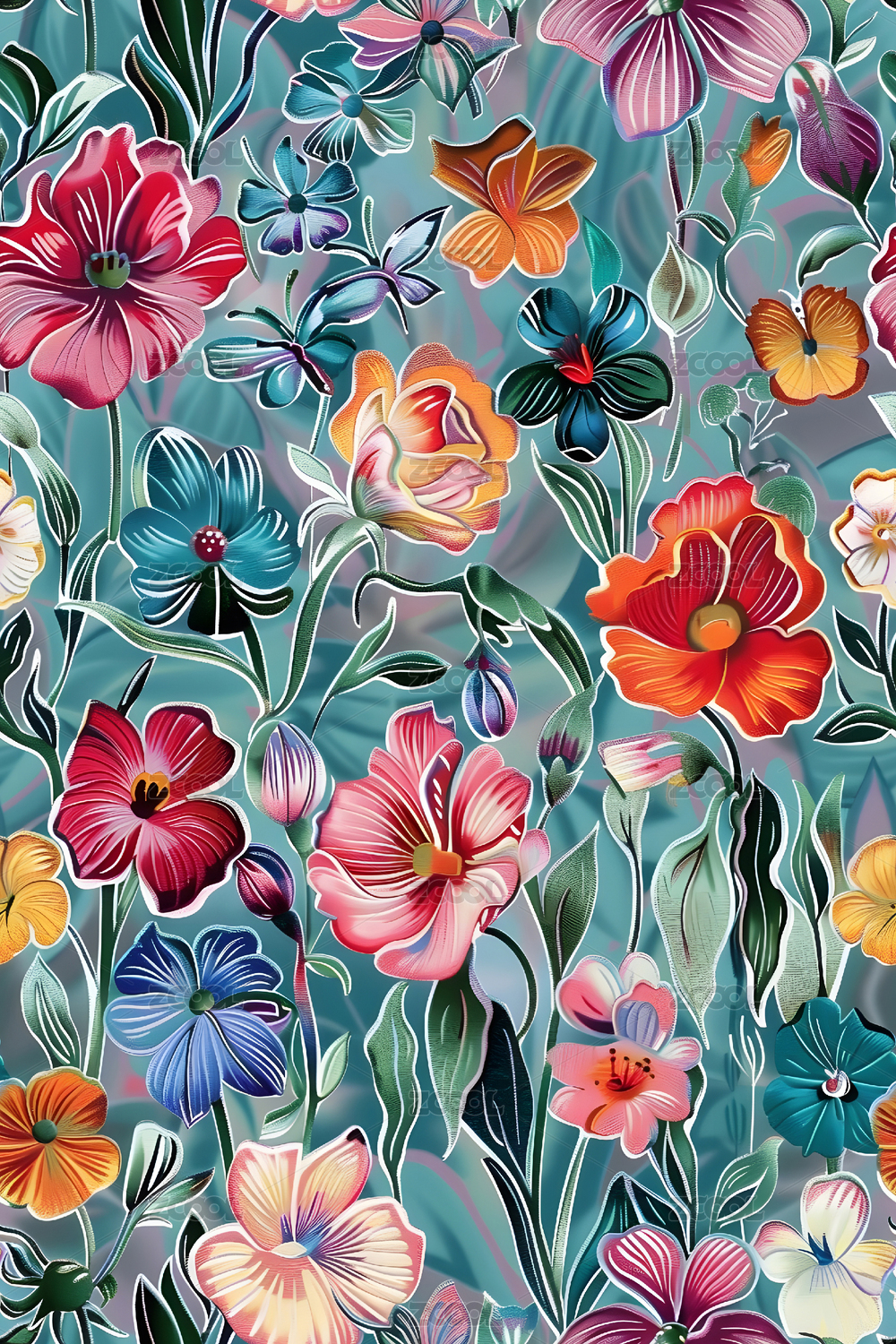 数码复古水彩花卉瓷砖图案抽象海报背景