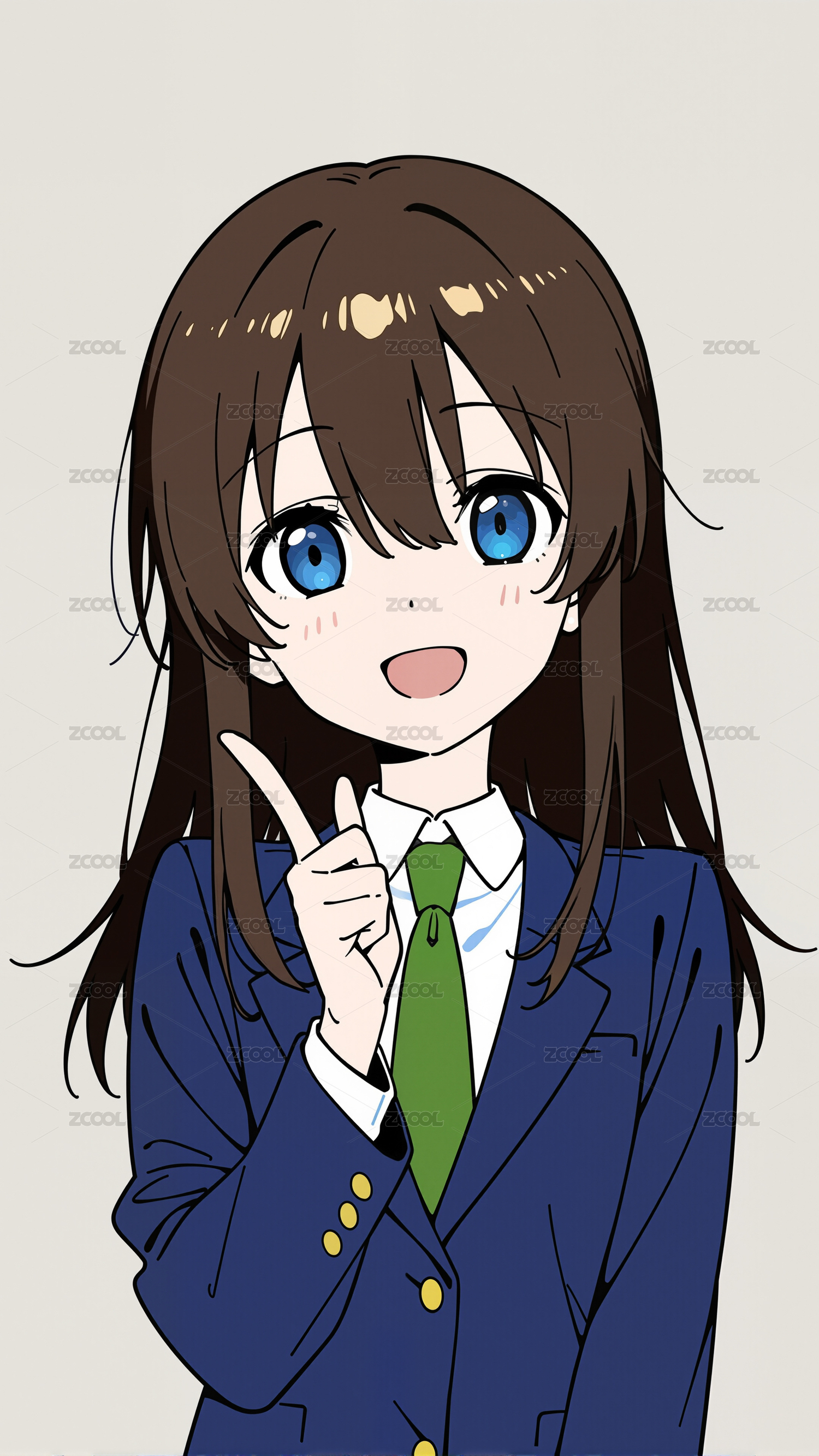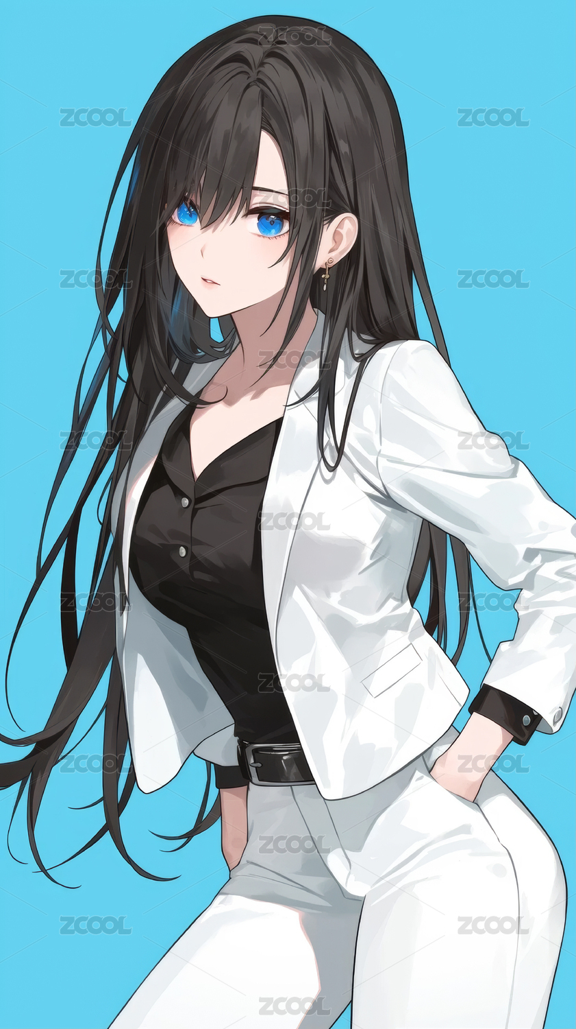 站在白色背景前的马尾辫和皮夹克的动漫女孩