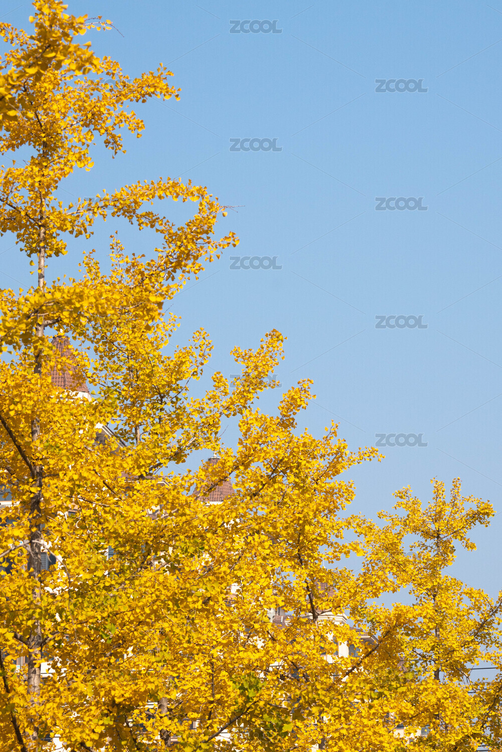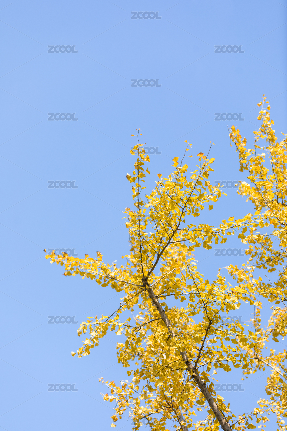 秋天的银杏林,仰视金色的银杏叶及湛蓝的天空