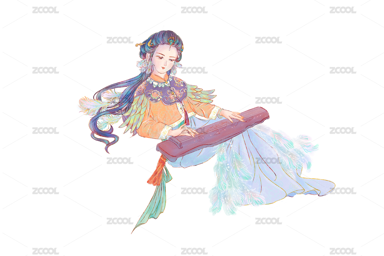 坐着弹古琴的仙女