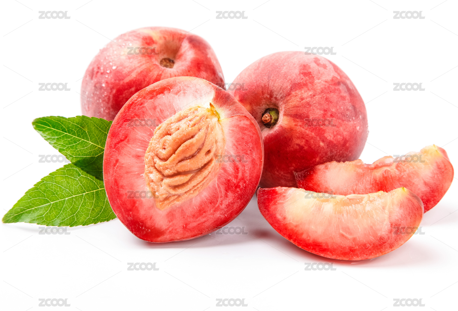 水蜜桃和切开的水蜜桃在白底上