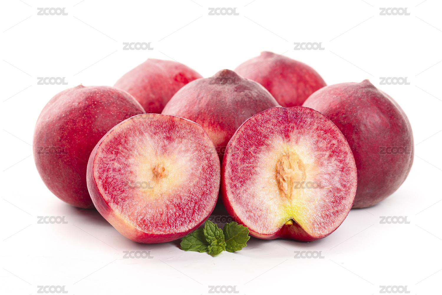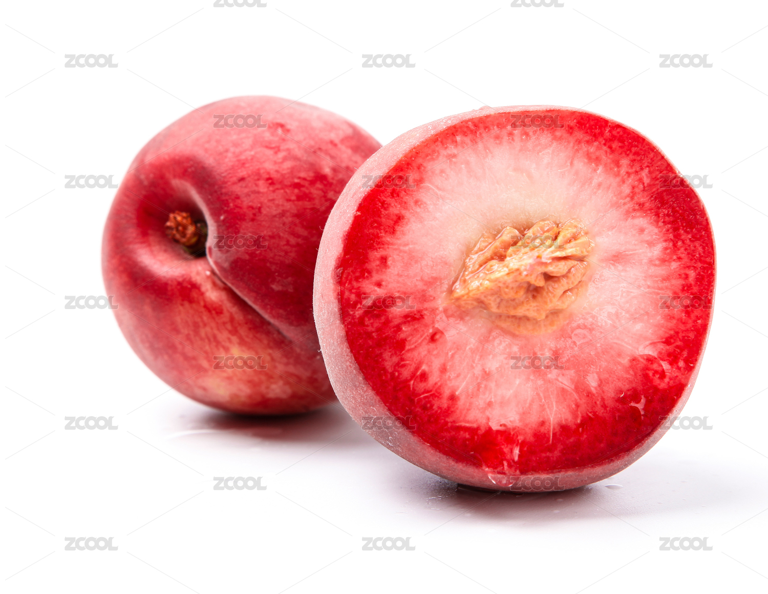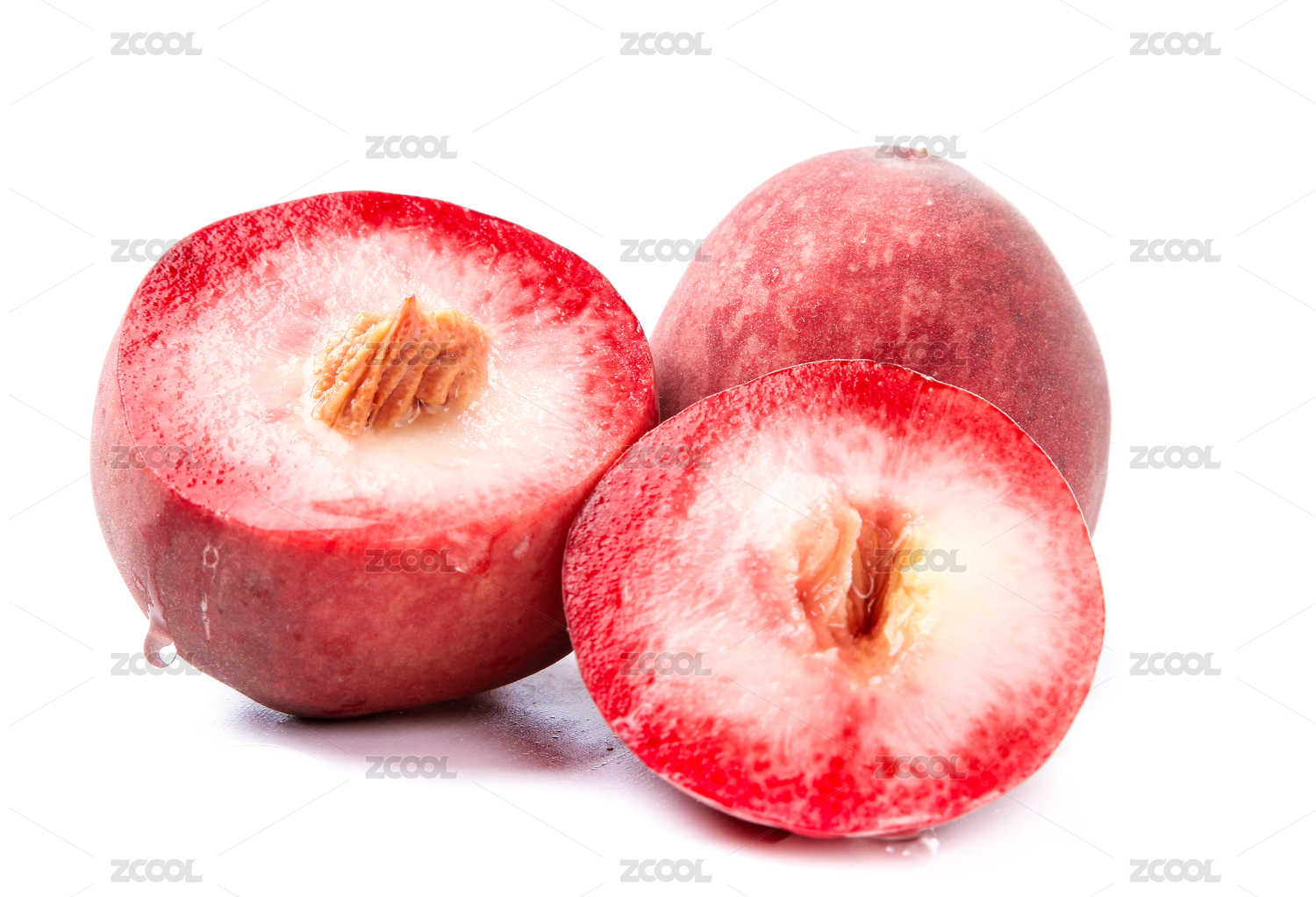 切开的红心毛桃在白底上