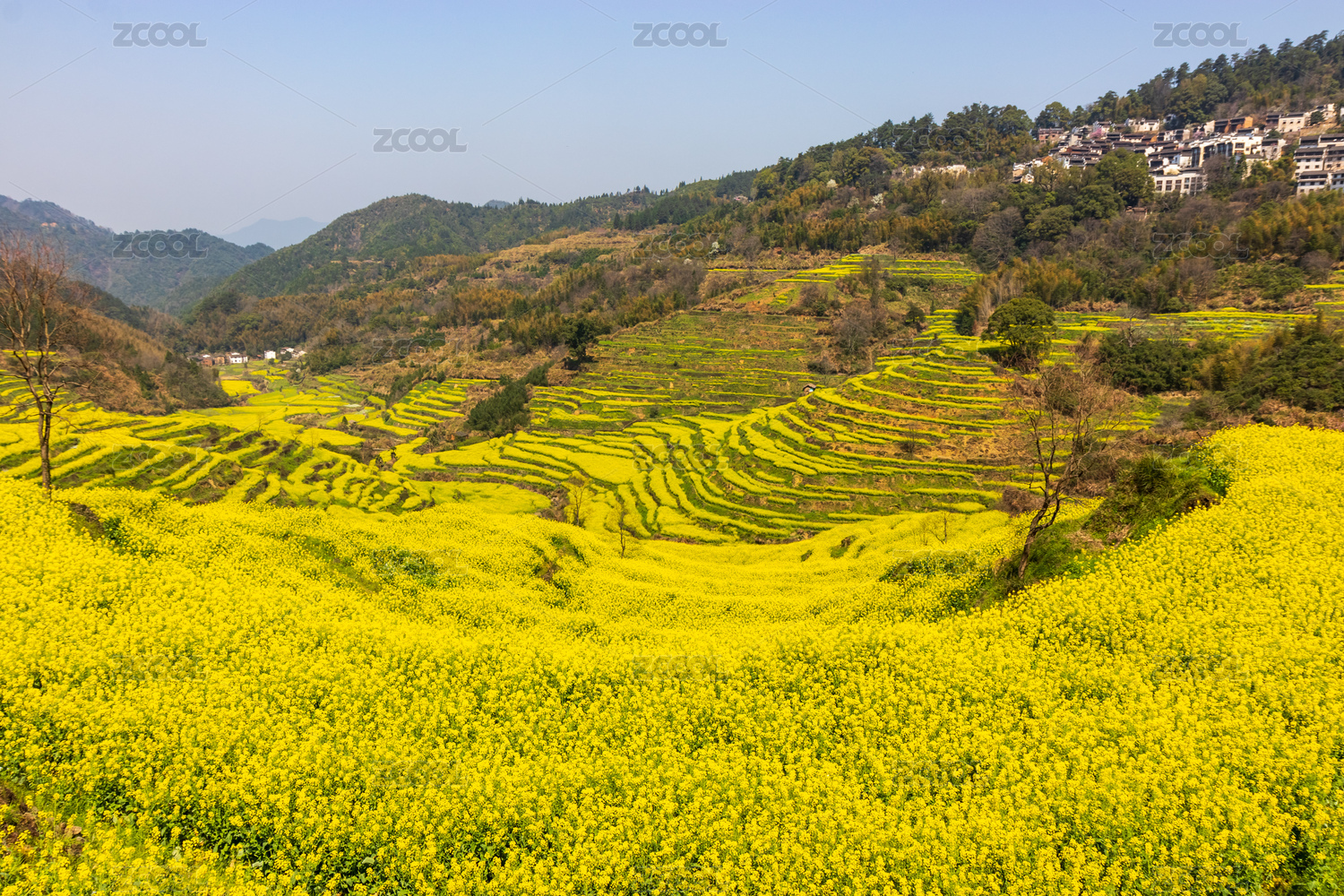 中国安徽省徽州区灵山村梯田油菜花