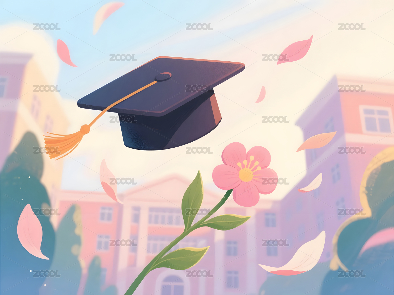 梦幻唯美毕业季毕业旅行五四青年节场景插图