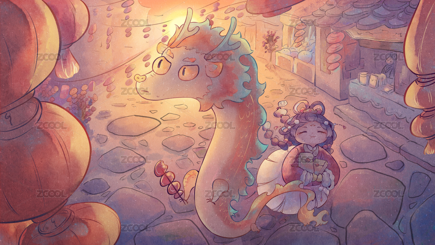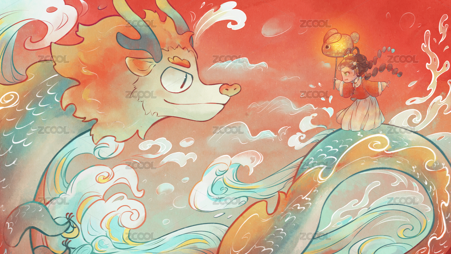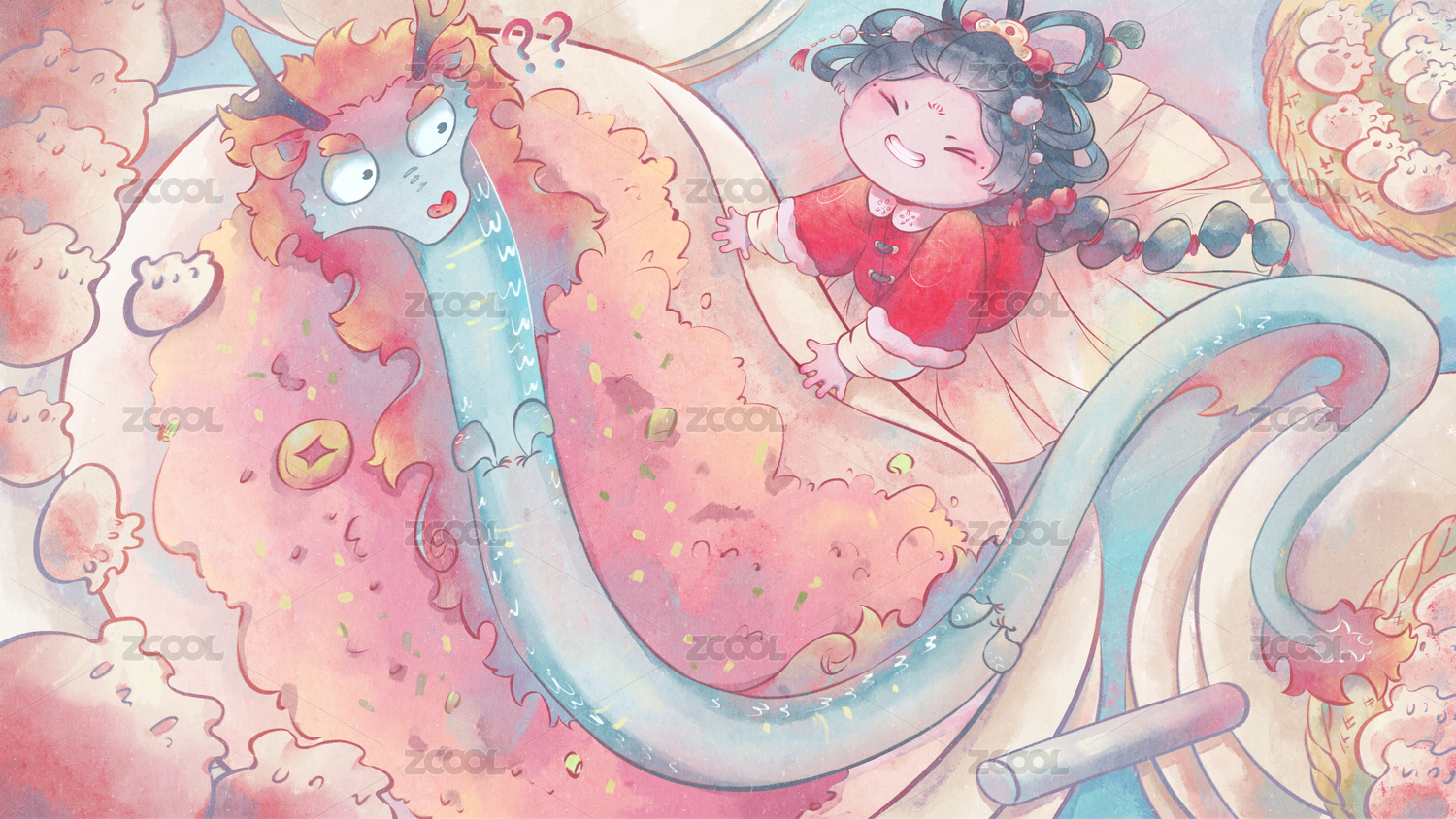 喜庆龙年插画中国龙守护中国孩子