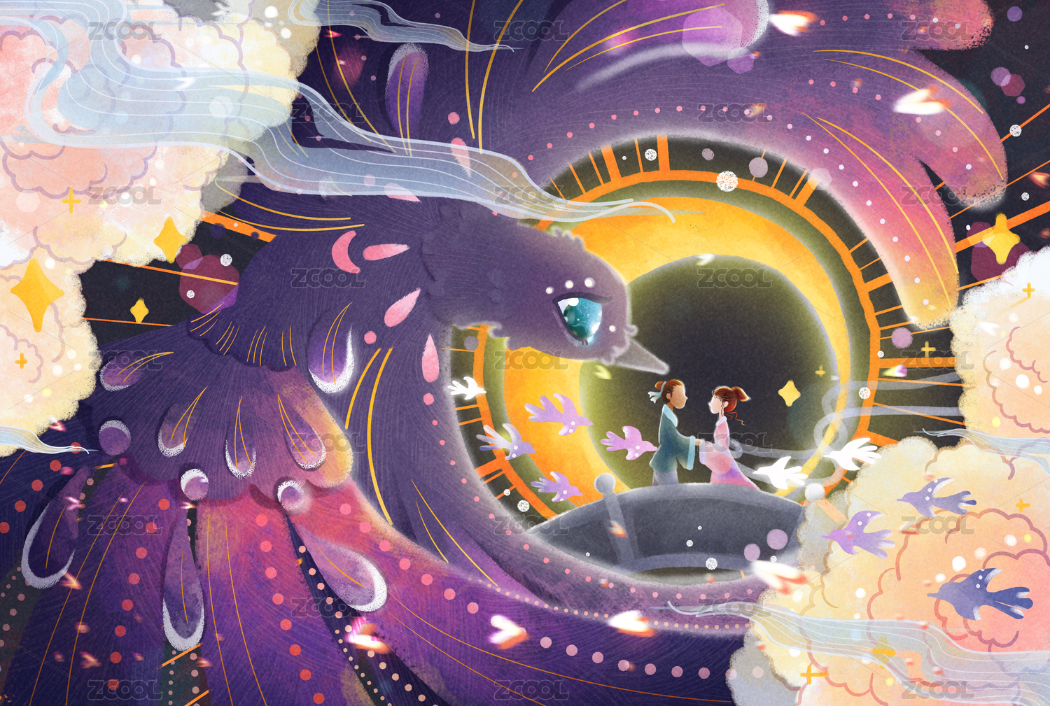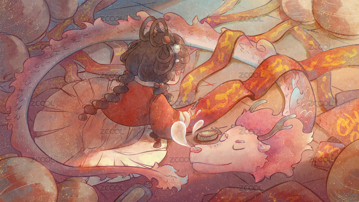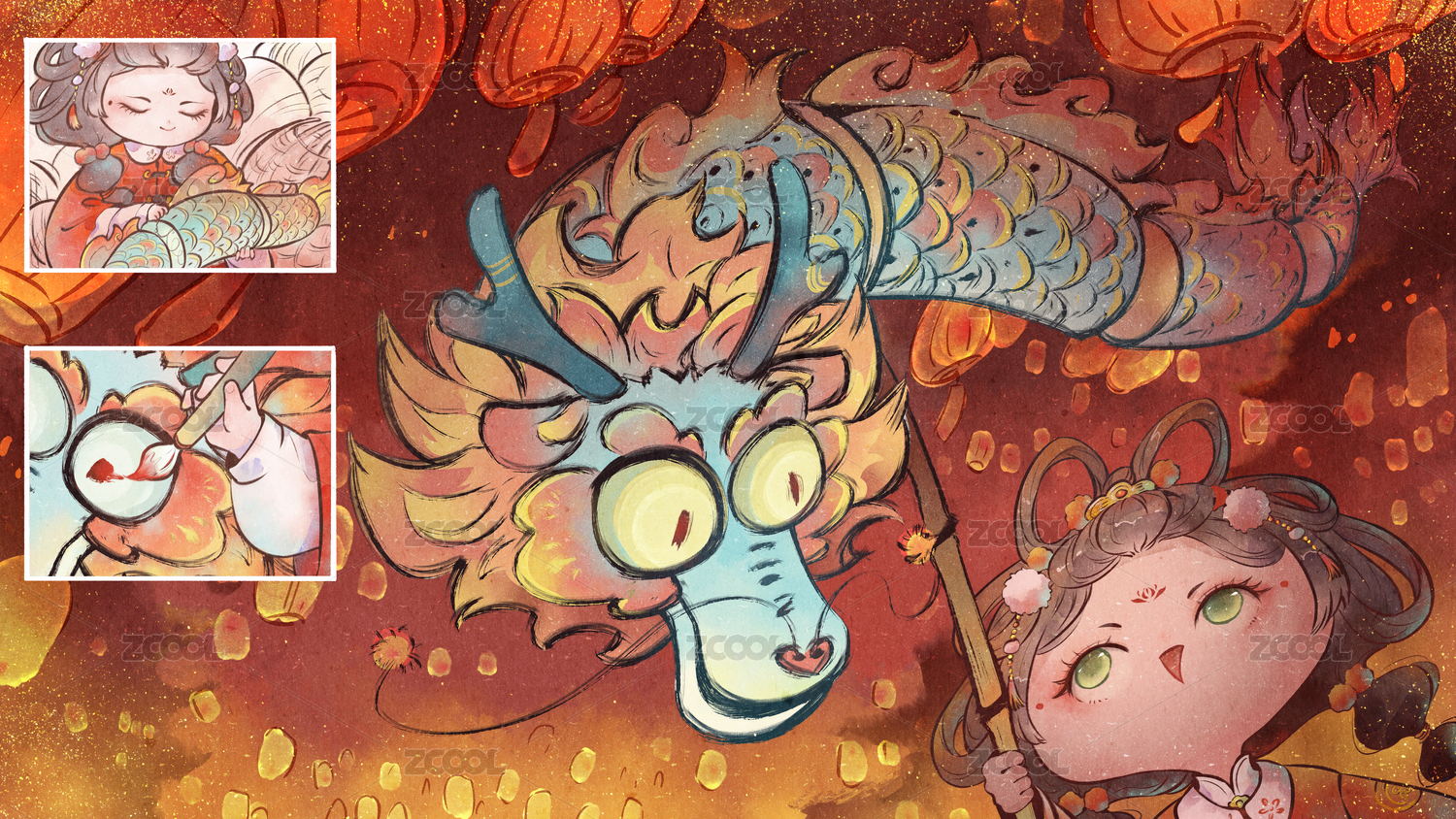 喜庆龙年插画中国龙守护中国孩子