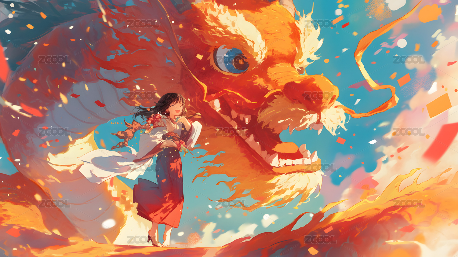 庆典火龙与少女共舞