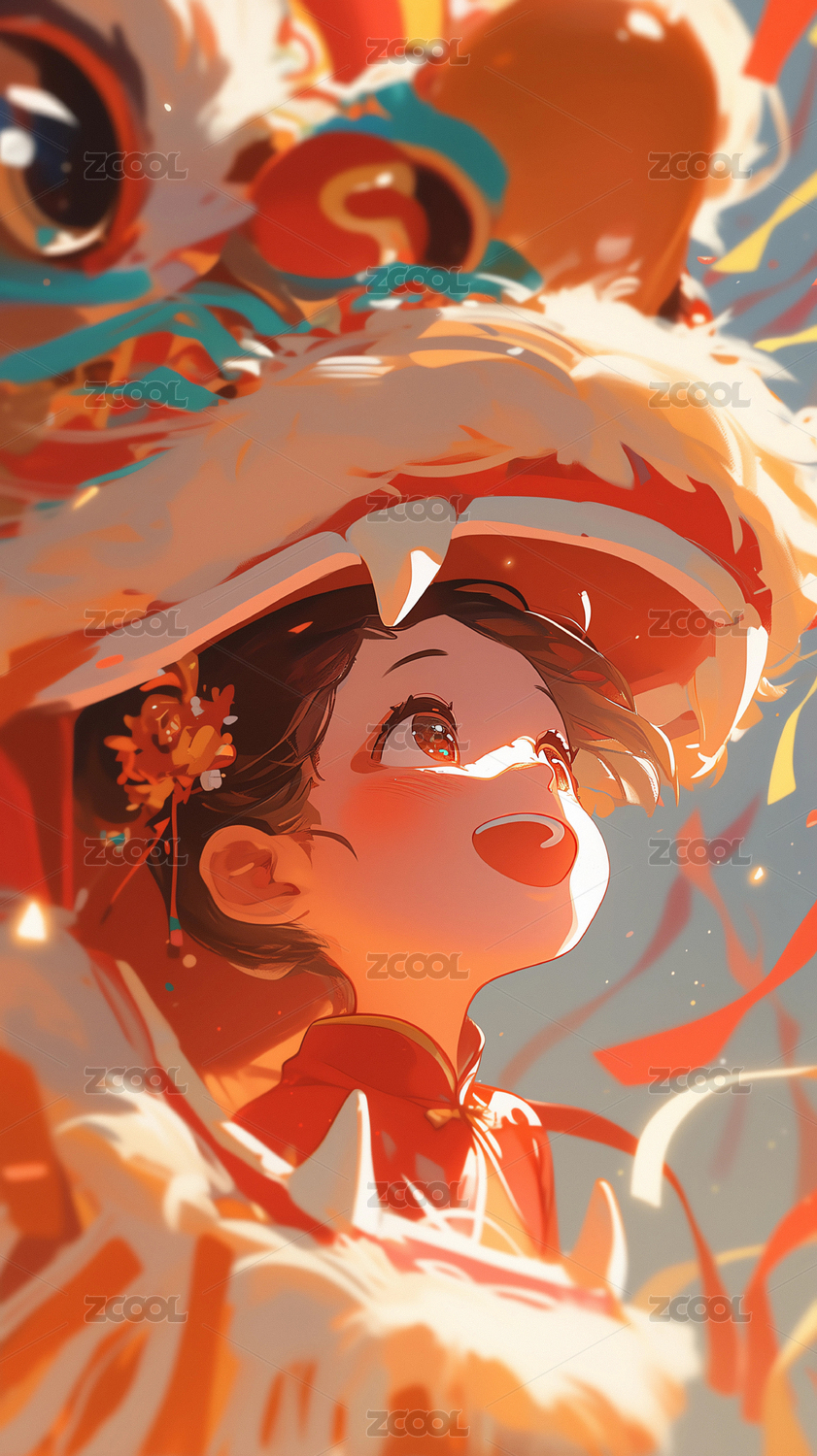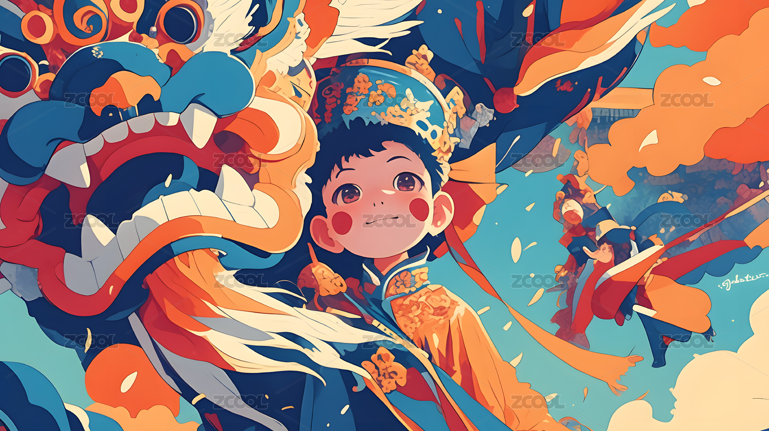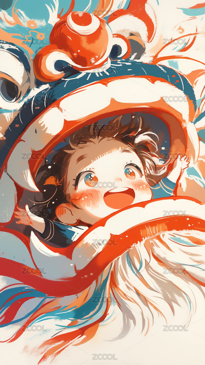节日庆典儿童与舞龙欢庆
