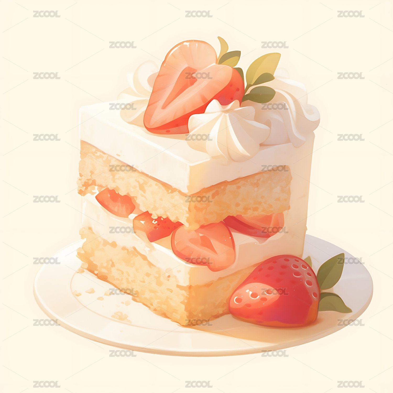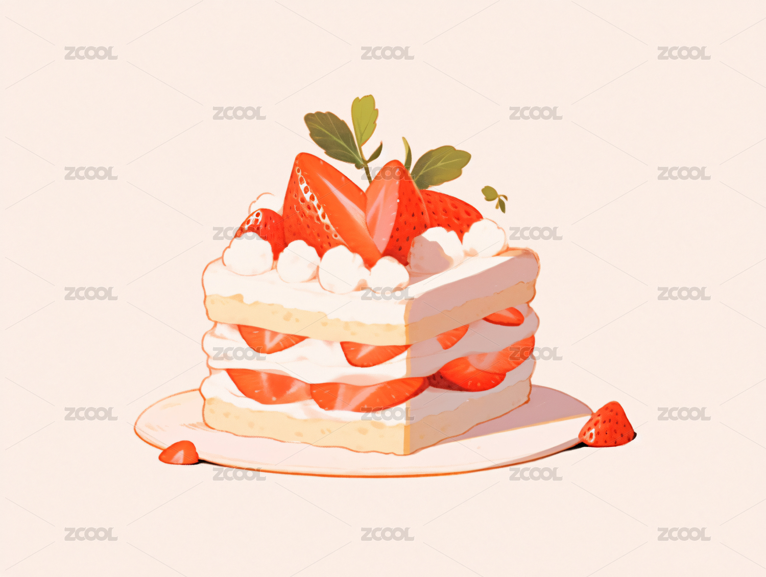 美味芝士鲜奶油草莓蛋糕卡通插画