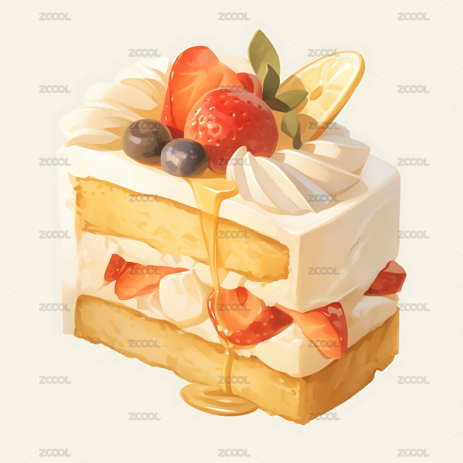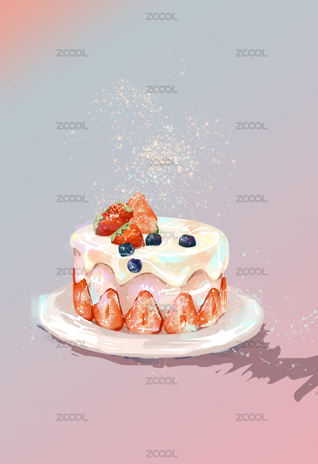 浆果蛋糕甜品下午茶果酱蛋糕水彩手绘
