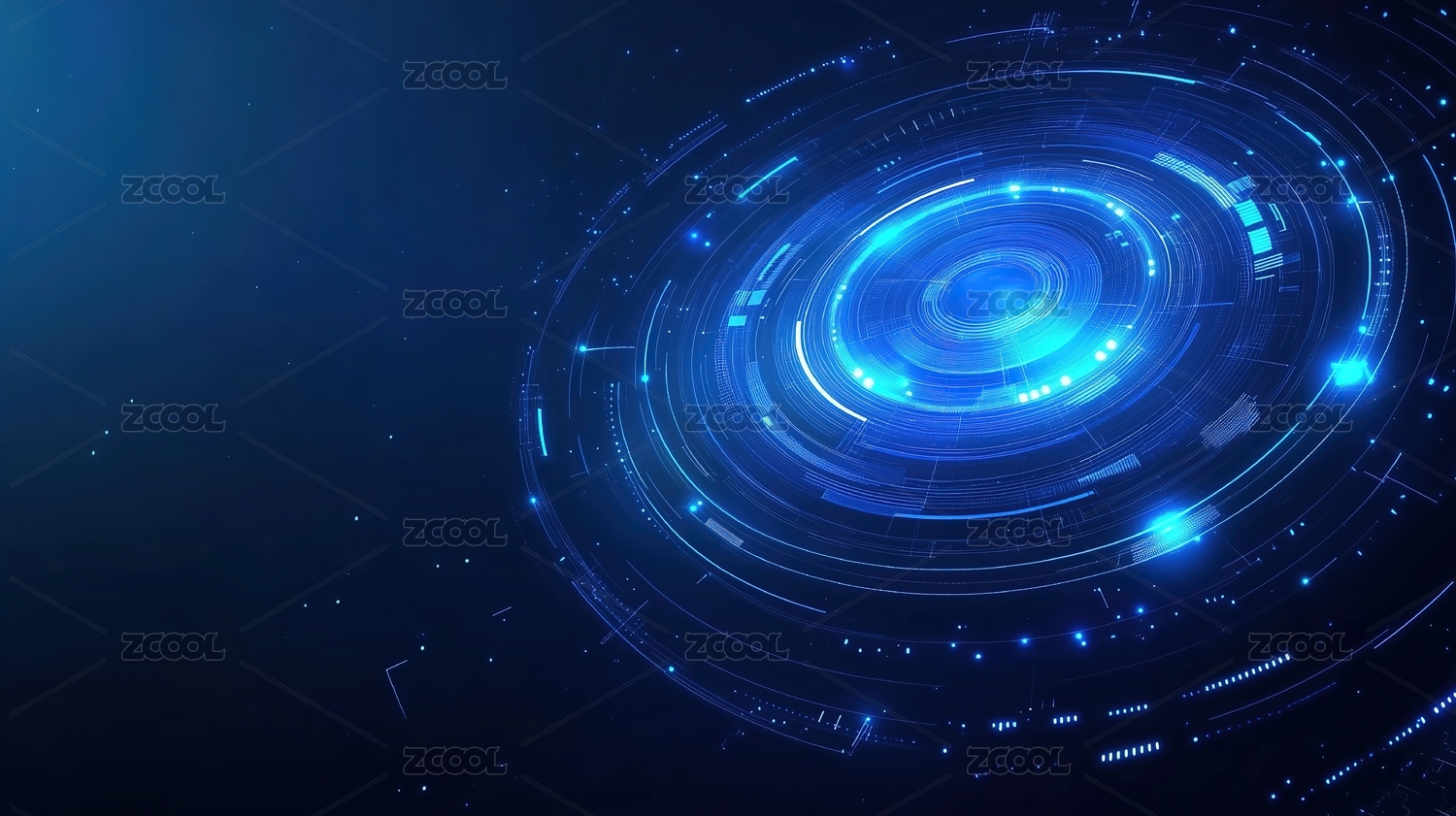 蓝色发光圆圈科技峰会未来感概念抽象背景