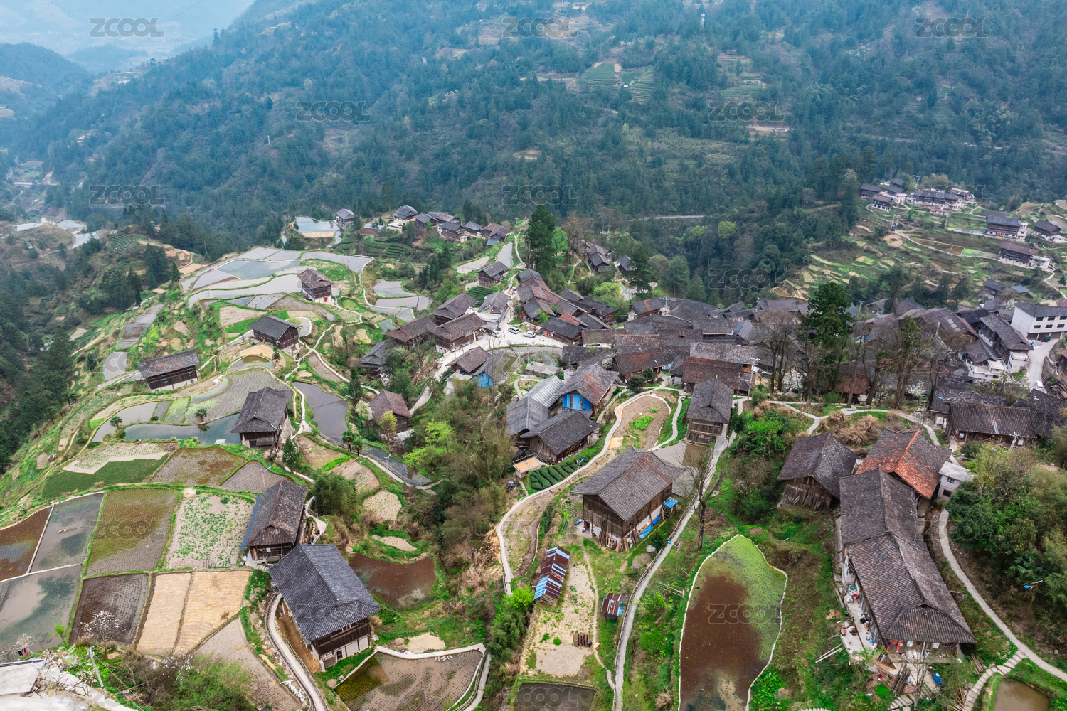 贵州黔东南雷山县雀鸟苗寨航拍乡村风光