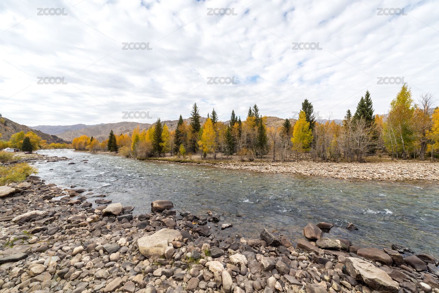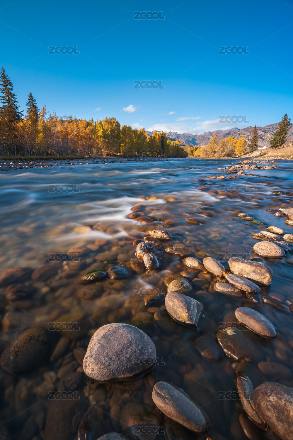 中国新疆阿勒泰可可托海额尔齐斯河溪流秋天