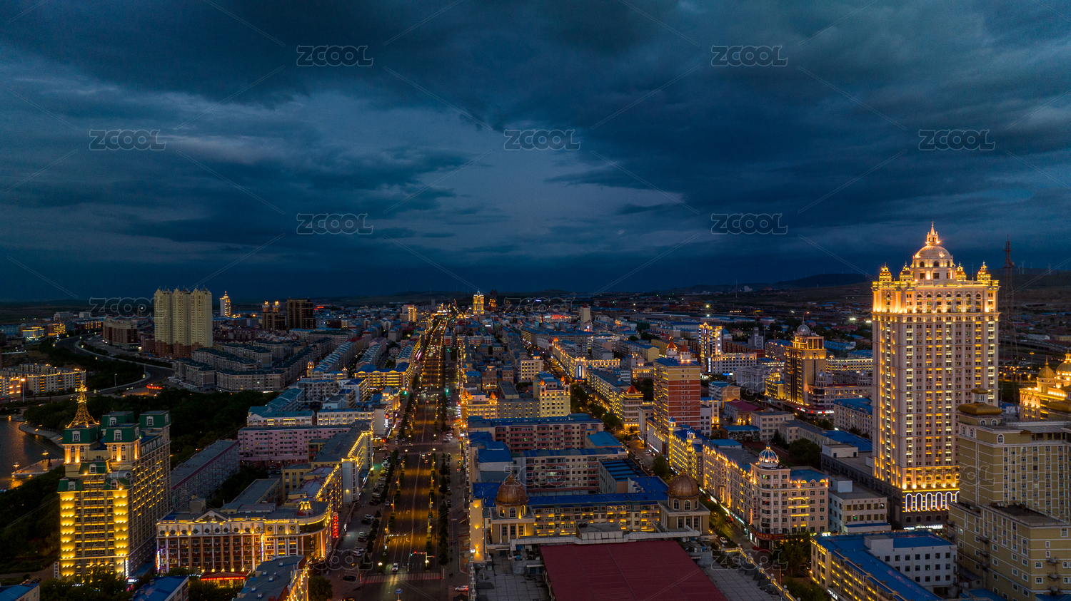 呼伦贝尔,满洲里,城市,建筑,夜景,风光,航拍,内蒙古,都市,繁华