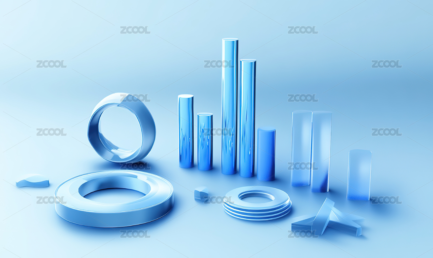 3D黄蓝色循环拼接圆环与向上箭头金融素材