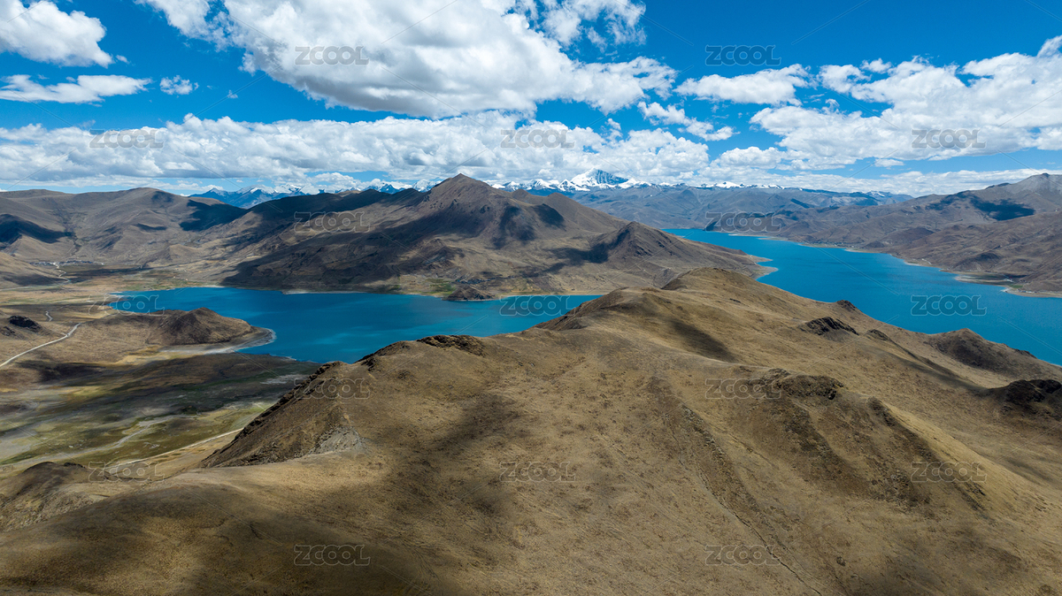 蓝天白云下的西藏圣湖羊卓雍措
