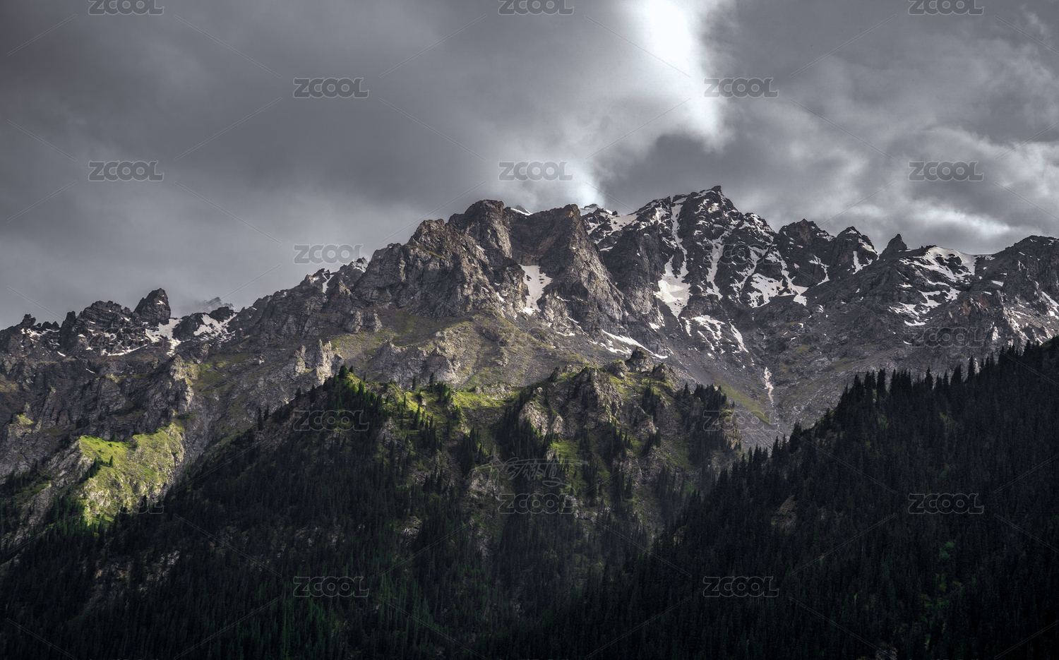 山峰,北疆,蓝天白云,高山草原,森林,晴天,自然美,自然风光,地形,天山山脉